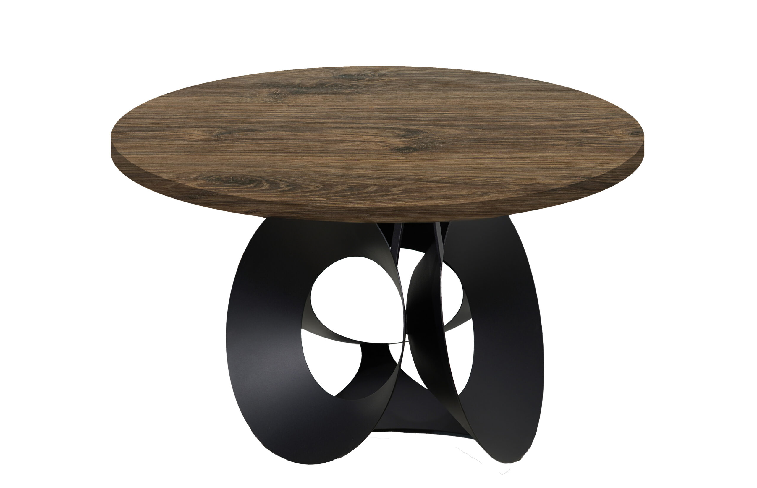 🔹 Βάση: Η βάση από μέταλλο ξεχωρίζει για τον καμπυλόγραμμο σχεδιασμό της που θυμίζει καλλιτεχνική γλυπτική, προσδίδοντας δυναμισμό και σταθερότητα στο έπιπλο.