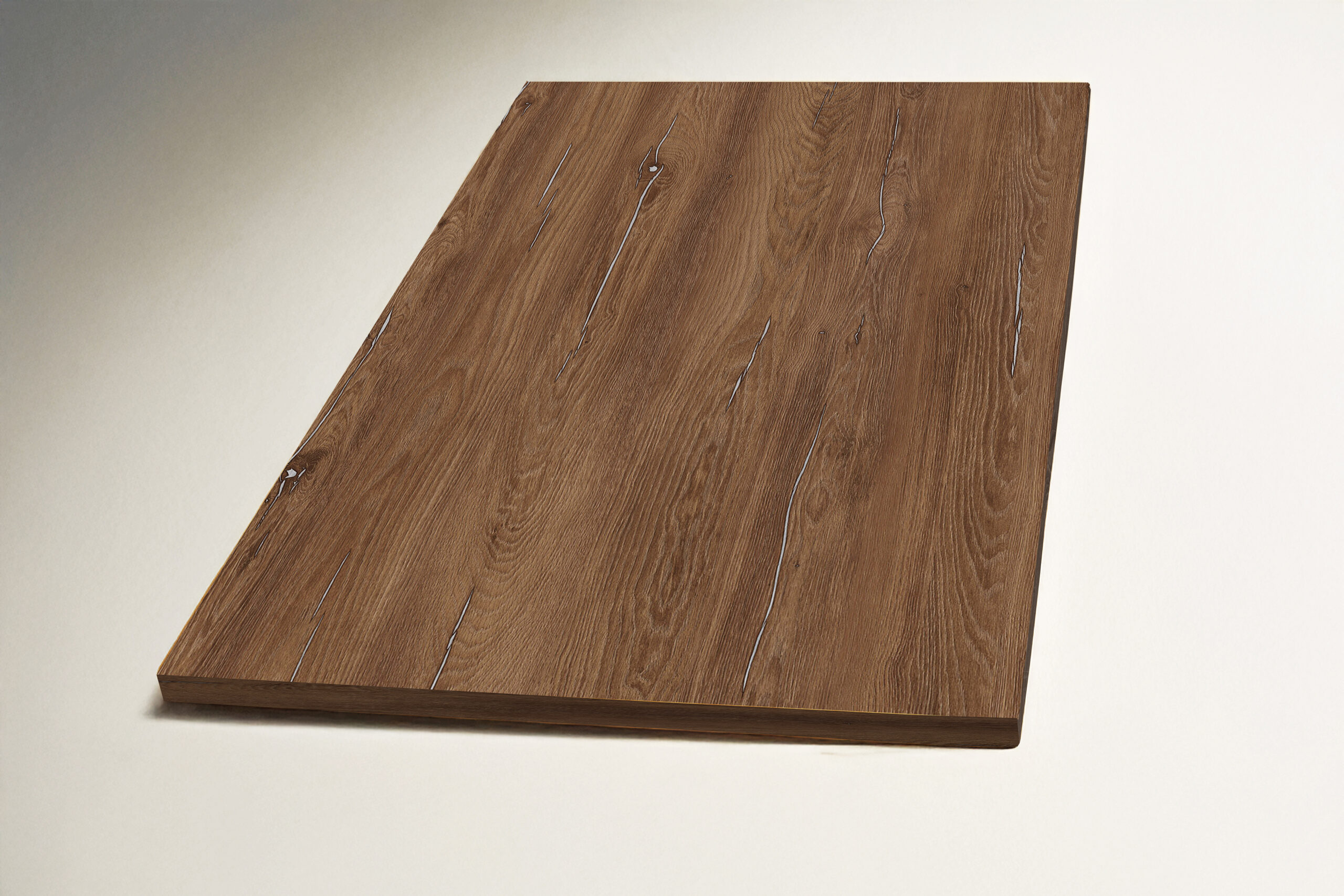 - Η επιφάνεια του τραπεζιού CYCLE είναι κατασκευασμένη από ανθεκτική μελαμίνη, υψηλής ποιότητας, με ρεαλιστική υφή και εμφάνιση φυσικού ξύλου. Διαθέτει ζεστή, φυσική απόχρωση δρυός με εμφανή νερά και αποτυπωμένους ρόζους, που χαρίζουν την αυθεντική αίσθηση ξύλου χωρίς την ευαισθησία του.