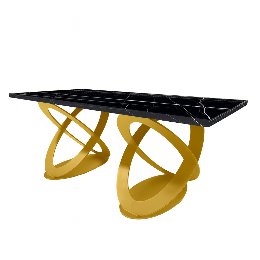 Δώστε κομψότητα και χαρακτήρα στον χώρο σας με αυτό το εντυπωσιακό τραπέζι τραπεζαρίας. Η επιφάνεια από υψηλής ποιότητας μελαμίνη με όψη μαύρο μάρμαρο προσφέρει μια μοντέρνα αισθητική στο χώρο σας. .