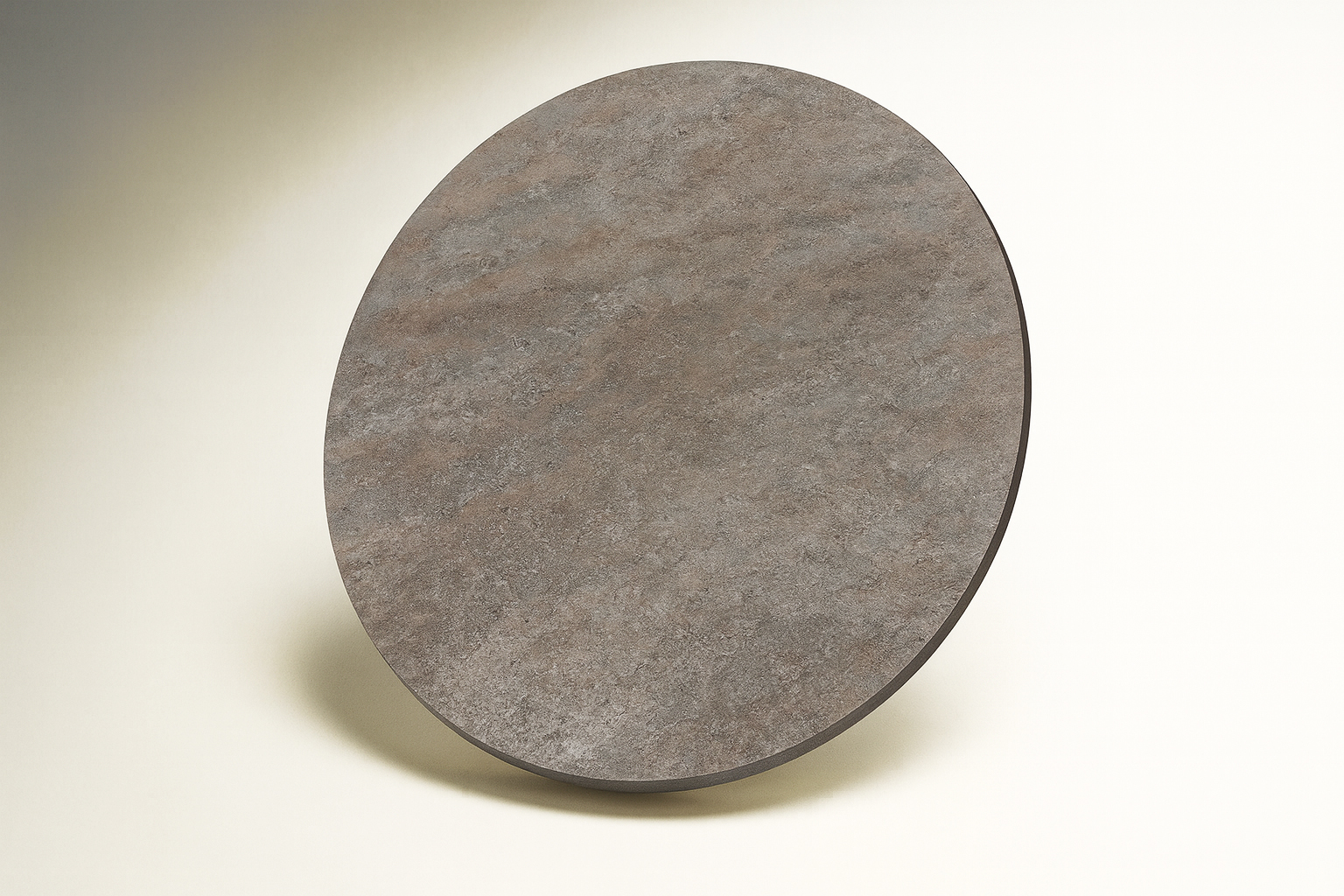 • Επιφάνεια: Στρογγυλή επιφάνεια από υψηλής ποιότητας μελαμινη με όψη τσιμέντου σε σκούρο χρώμα, που προσδίδει ζεστασιά και κομψότητα.
