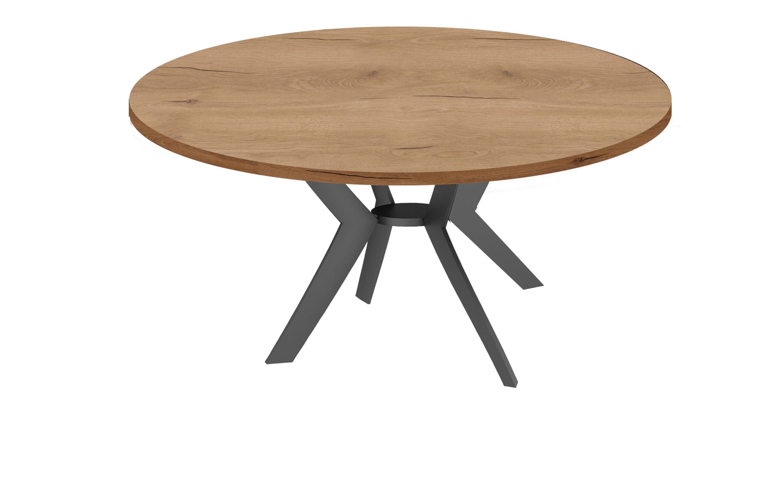 Αναβαθμίστε τη διακόσμηση της τραπεζαρίας σας με αυτό το εντυπωσιακό στρογγυλό τραπέζι, που συνδυάζει φυσική ζεστασιά με βιομηχανική αισθητική. Η επιφάνεια σε φυσικό ξύλο δρυός αποπνέει διαχρονική κομψότητα, ενώ η μαύρη μεταλλική spider βάση προσθέτει σταθερότητα και στιβαρότητα με μοντέρνο χαρακτήρα.