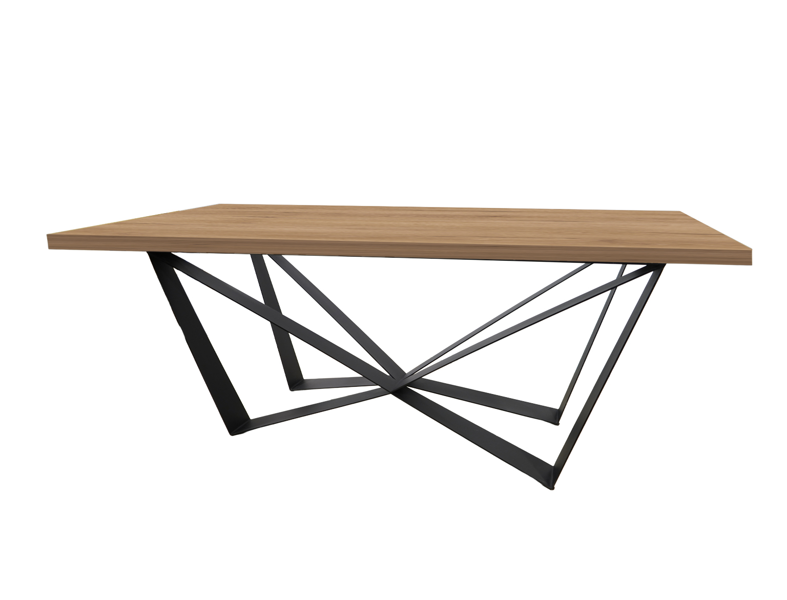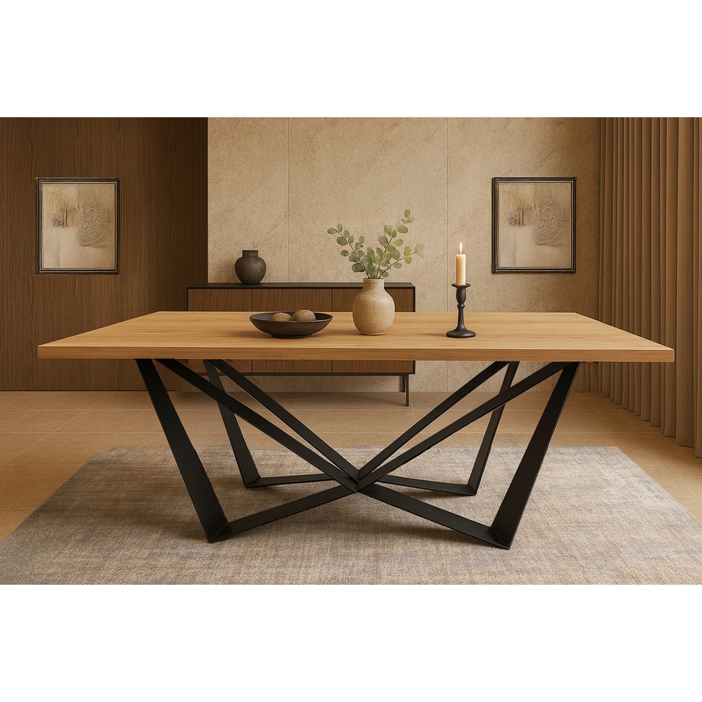 Η μεταλλική βάση σε ιδιαίτερο γεωμετρικό σχεδιασμό προσδίδει μοναδικό χαρακτήρα και υψηλή σταθερότητα, καθιστώντας το τραπέζι ιδανικό για καθημερινή χρήση αλλά και φιλοξενία.