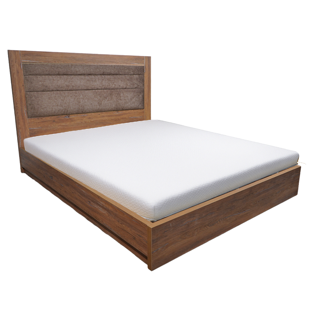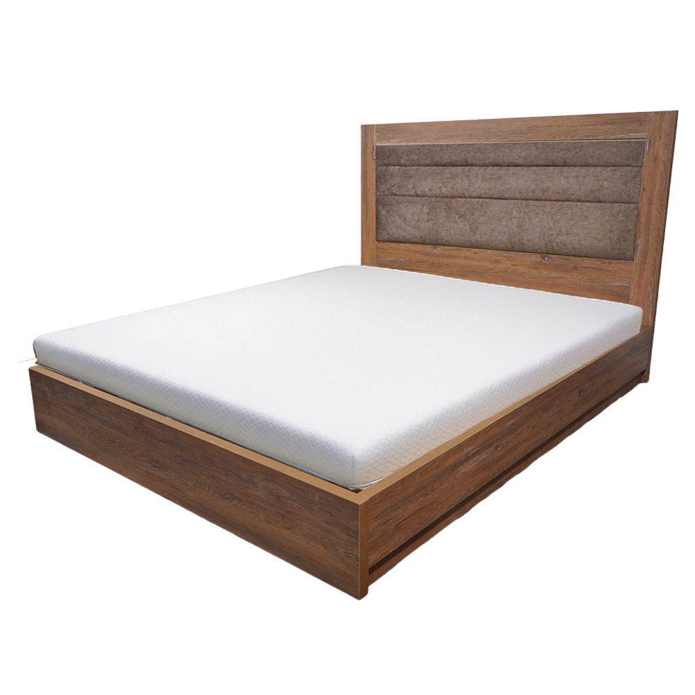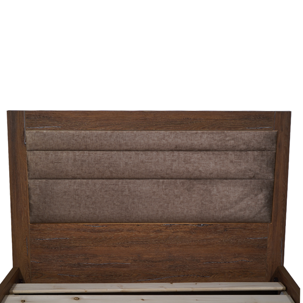 Ανανεώστε το υπνοδωμάτιό σας με αυτό το κομψό κρεβάτι, που συνδυάζει τη ζεστασιά του ξύλου με την άνεση ενός υφασμάτινου προσκέφαλου. Η στιβαρή ξύλινη βάση σε καρυδί απόχρωση προσφέρει εξαιρετική αντοχή και σταθερότητα, ενώ η επενδυμένη καφέ πλάτη δημιουργεί μια αρμονία και προσδίδει μια comfort αισθηση στον χώρο.