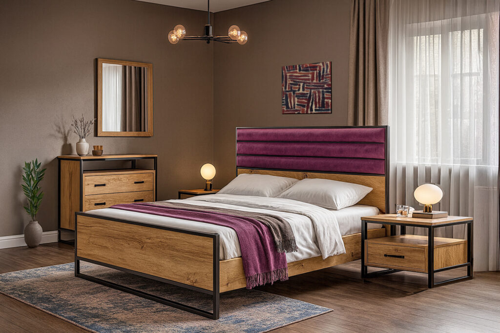 Κρεβάτι Kombo Spitimade® by Moderno επενδυμένο με βελούδο ύφασμα σε απόχρωση καφέ -160×200εκ
