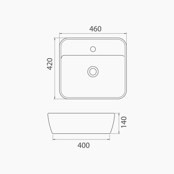 Αυτός ο μοντέρνος επιτραπέζιος νιπτήρας με τετράγωνο σχεδιασμό και απαλά στρογγυλεμένες γωνίες συνδυάζει λειτουργικότητα και κομψότητα. Η ενσωματωμένη οπή για τη βρύση προσφέρει ευκολία στην εγκατάσταση και καθαρότητα στο design, καθιστώντας τον ιδανικό για κάθε σύγχρονο μπάνιο.