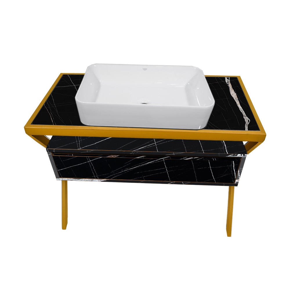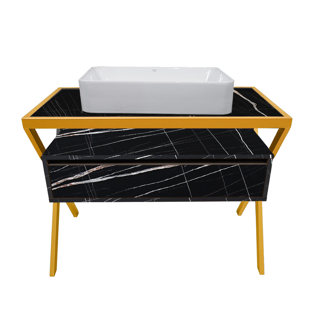 - Συρτάρι με αποθηκευτικό χώρο από μελαμίνη 18mm με λεία επιφάνεια για ευκολία στην καθημερινή χρήση σε όψη μαύρου μαρμάρου, με τεχνολογία gola
