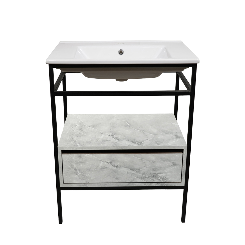 - Συρτάρι επίπλου με όψη μαρμάρου με γκρι νερά, με αποθηκευτικό χώρο από μελαμίνη. Άνοιγμα συρταριού με σύστημα Gola .