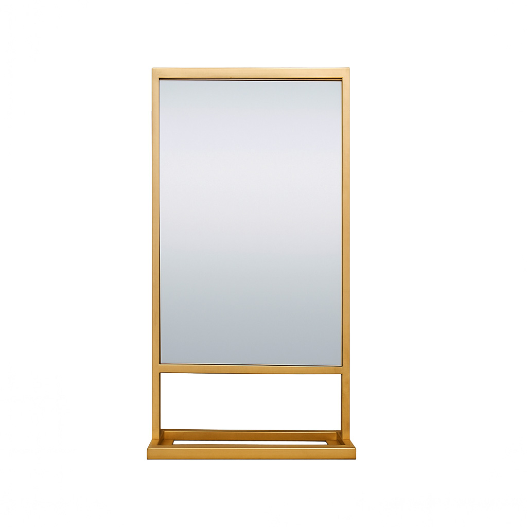 Ανανεώστε τον χώρο σας με έναν κομψό και μοντέρνο καθρέφτη, σχεδιασμένο να συνδυάζει αισθητική και λειτουργικότητα. Το λεπτό χρυσό μεταλλικό πλαίσιο προσφέρει καθαρή, industrial αισθητική, ενώ η ενσωματωμένη βάση στο κάτω μέρος προσθέτει πρακτικότητα, επιτρέποντας την εύκολη τοποθέτηση καθημερινών αντικειμένων.