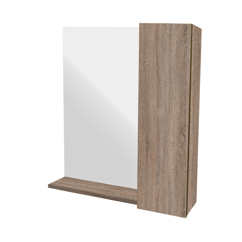 Ανανεώστε τον χώρο σας με αυτό το κομψό και σύγχρονο επιτοίχιο έπιπλο με καθρέφτη, ιδανικό για μπάνιο. Σχεδιασμένο με κάθετη ξύλινη επιφάνεια είτε αριστερά είτε δεξιά  που εσωτερικά διαθέτει 2 ράφια και πρακτικό ράφι (εταζιέρα) στη βάση, το έπιπλο προσφέρει λειτουργικότητα για την τοποθέτηση μικρών αντικειμένων, καλλυντικών ή διακοσμητικών στοιχείων. Η στιβαρή κατασκευή του εξασφαλίζει αντοχή και σταθερότητα, ενώ η απλή του γραμμή το κάνει εύκολο να συνδυαστεί με κάθε στυλ διακόσμησης.