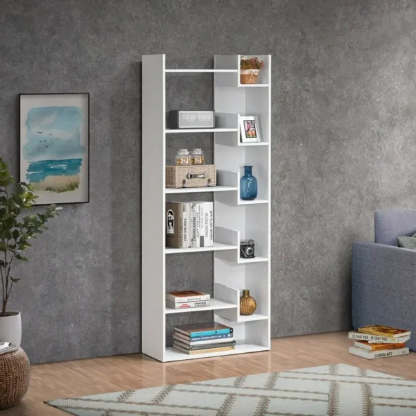 Βιβλιοθήκη-Ραφιέρα Denver με χρυσό μεταλλικό σκελετό και λευκή όψη μαρμάρου