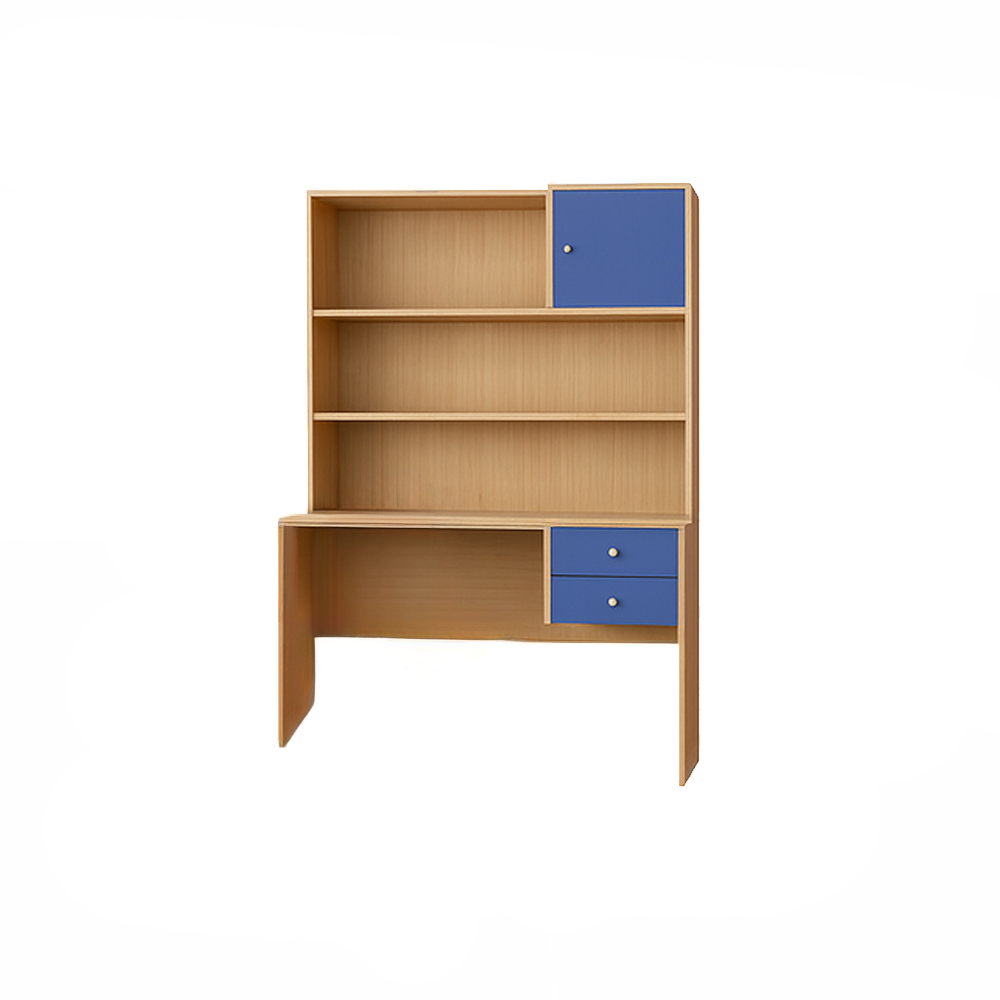 Αναβαθμίστε τον χώρο εργασίας ή μελέτης με αυτήν τη μοντέρνα ξύλινη εταζέρα γραφείου, που συνδυάζει πρακτικότητα και σύγχρονο στιλ. Η φυσική απόχρωση ξύλου ταιριάζει αρμονικά με τις μπλε προσόψεις στο ντουλάπι και στα συρτάρια, προσφέροντας μια ζωντανή πινελιά αισθητικής.