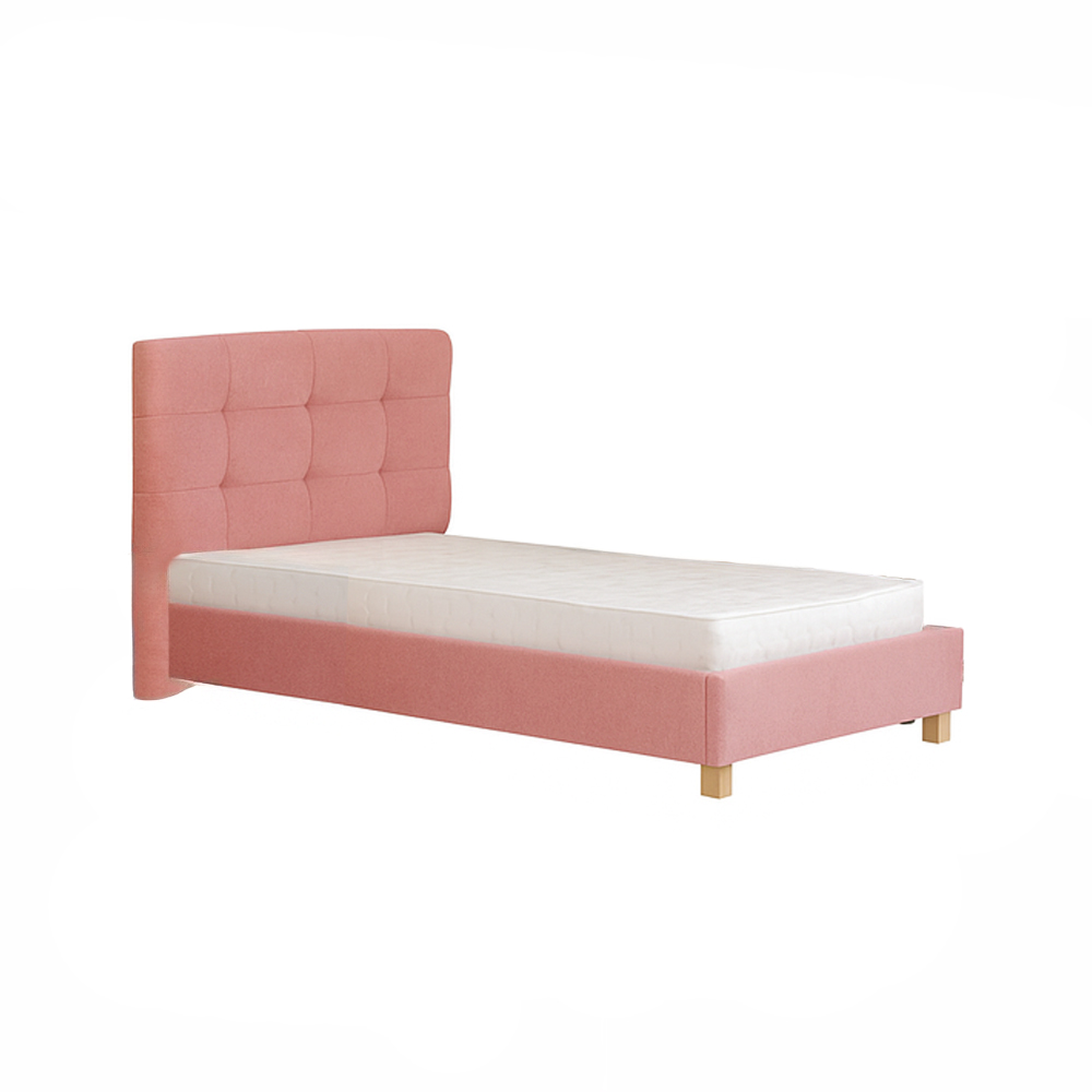 Αναβαθμίστε τον χώρο σας με αυτό το μοντέρνο μονό κρεβάτι, το οποίο συνδυάζει κομψότητα και πρακτικότητα. Το κρεβάτι διαθέτει εντυπωσιακό υφασμάτινο προσκέφαλο σε ροζ απόχρωση, διακοσμημένο με καπιτονέ ραφές για ιδιαίτερο αισθητικό αποτέλεσμα. Η σταθερή και ανθεκτική βάση προσφέρει εξαιρετική υποστήριξη, ενώ τα ξύλινα πόδια προσδίδουν φυσική ισορροπία και στιβαρότητα στη συνολική κατασκευή.