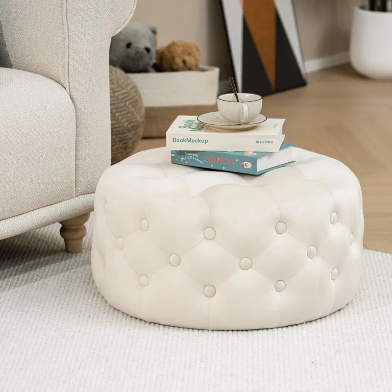 Σκαμπό-πουφ Ferdia βελούδο κρεμ Φ59×28.5εκ