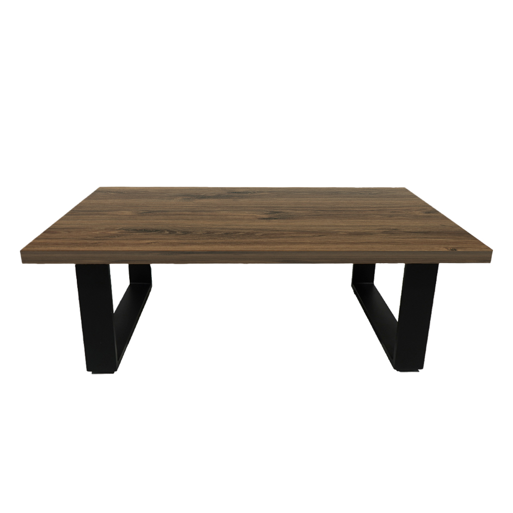 Αναβαθμίστε το σαλόνι σας με αυτό το μοντέρνο τραπέζι σαλονιού, το οποίο συνδυάζει τη βιομηχανική αισθητική με τη διαχρονική λειτουργικότητα. Η επιφάνεια από μελαμίνη σε σκούρα καφέ απόχρωση προσδίδει μια πιο ζεστή εμφάνιση, ενώ η μεταλλική μαύρη βάση σε σχήμα Π προσφέρει σταθερότητα και μοντέρνο χαρακτήρα.