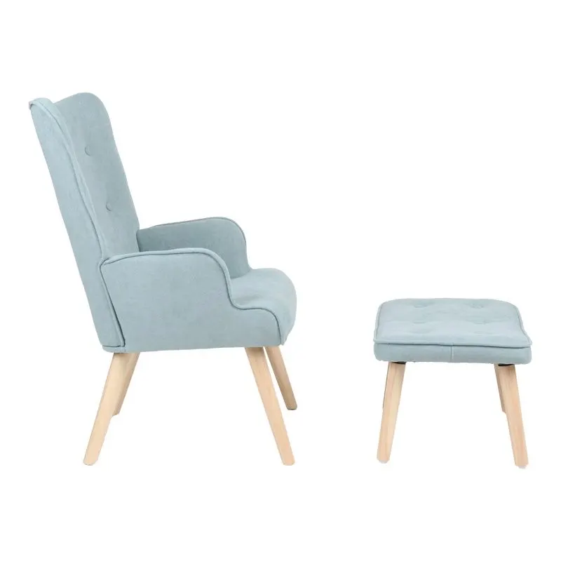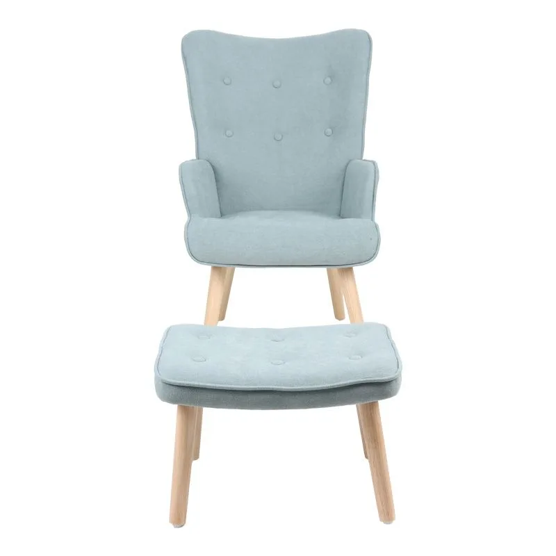 Πολυθρόνα με υποπόδιο Melisia βεραμάν ύφασμα και ξύλινο πόδι σε φυσική απόχρωση