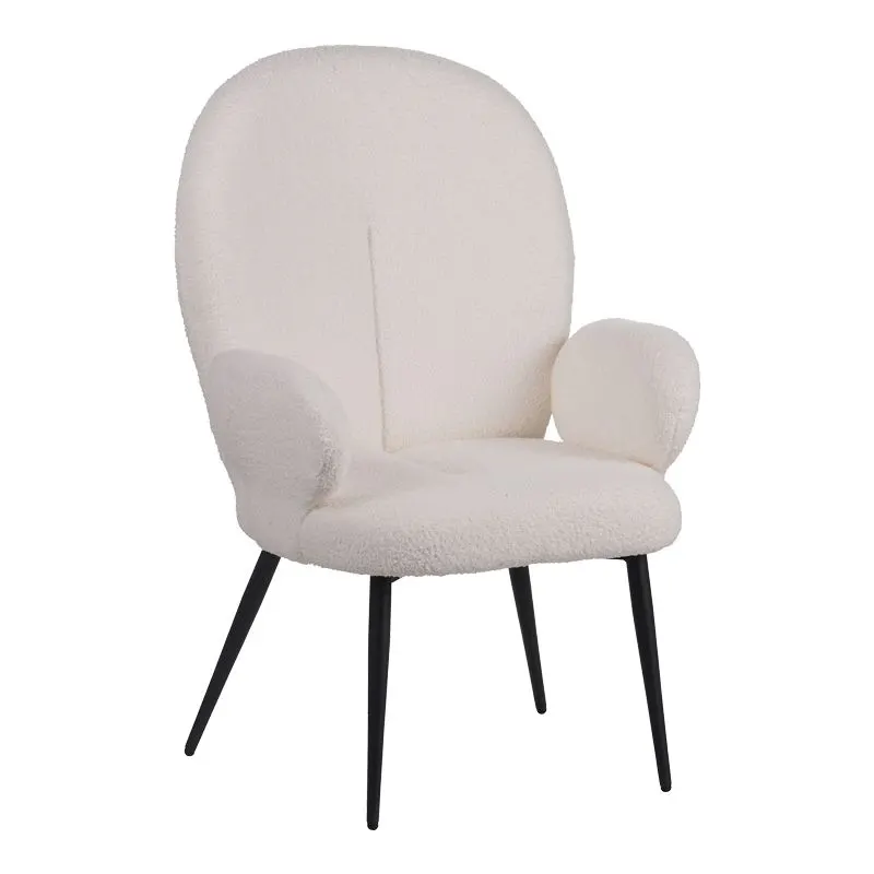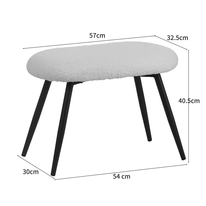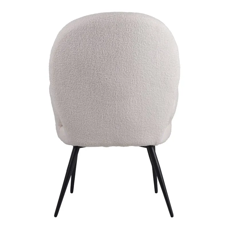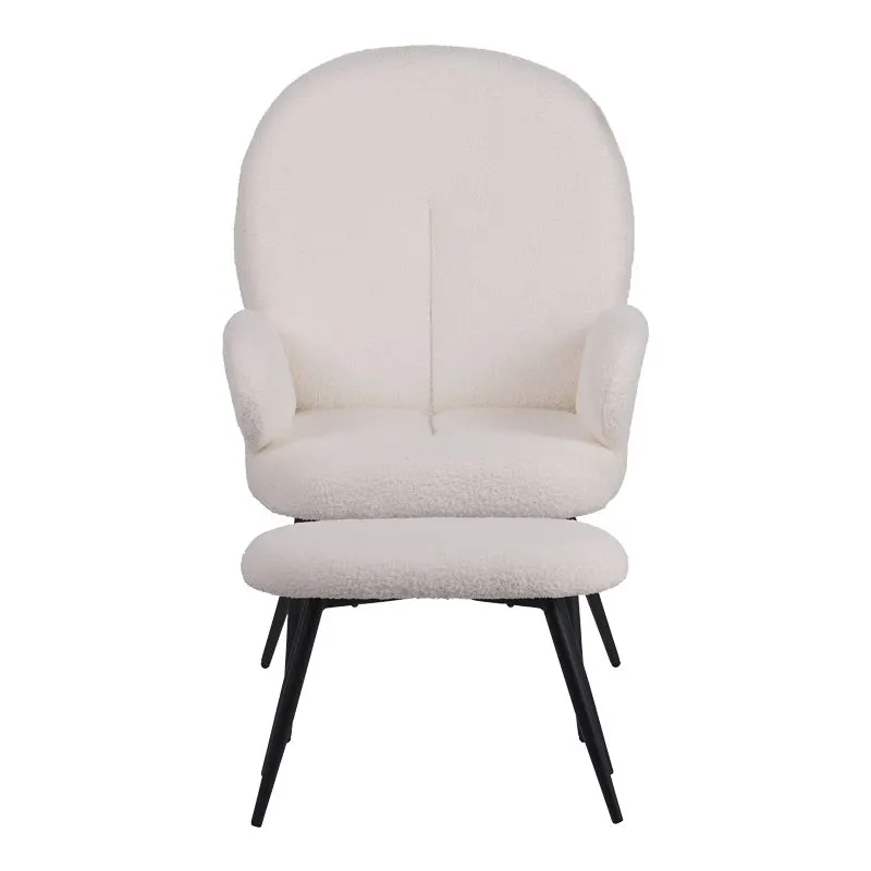 Πολυθρόνα με υποπόδιο Qarar μπουκλέ ύφασμα σε λευκή απόχρωση με μαύρα μεταλλικά πόδια