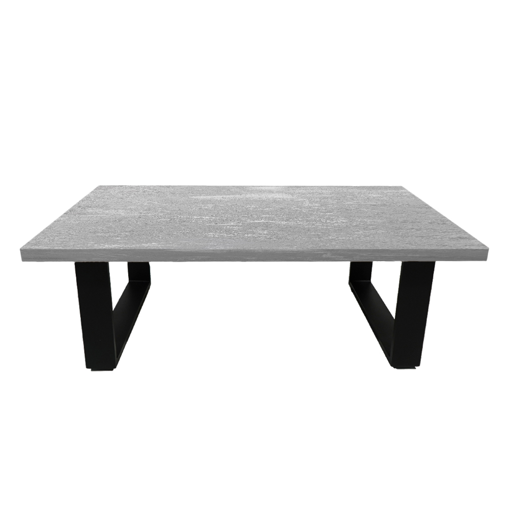 Αναβαθμίστε το σαλόνι σας με αυτό το μοντέρνο τραπέζι σαλονιού, το οποίο συνδυάζει τη βιομηχανική αισθητική με τη διαχρονική λειτουργικότητα. Η επιφάνεια από τσιμέντο προσδίδει μια σύγχρονη και στιβαρή εμφάνιση, ενώ η μεταλλική μαύρη βάση σε σχήμα Π προσφέρει σταθερότητα και μοντέρνο χαρακτήρα.