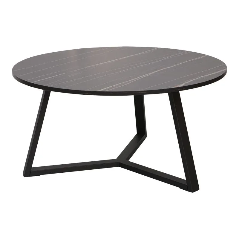 Τραπέζι σαλονιού Berton σε όψη μαρμάρου με μαύρο μέταλλο Φ80×40εκ