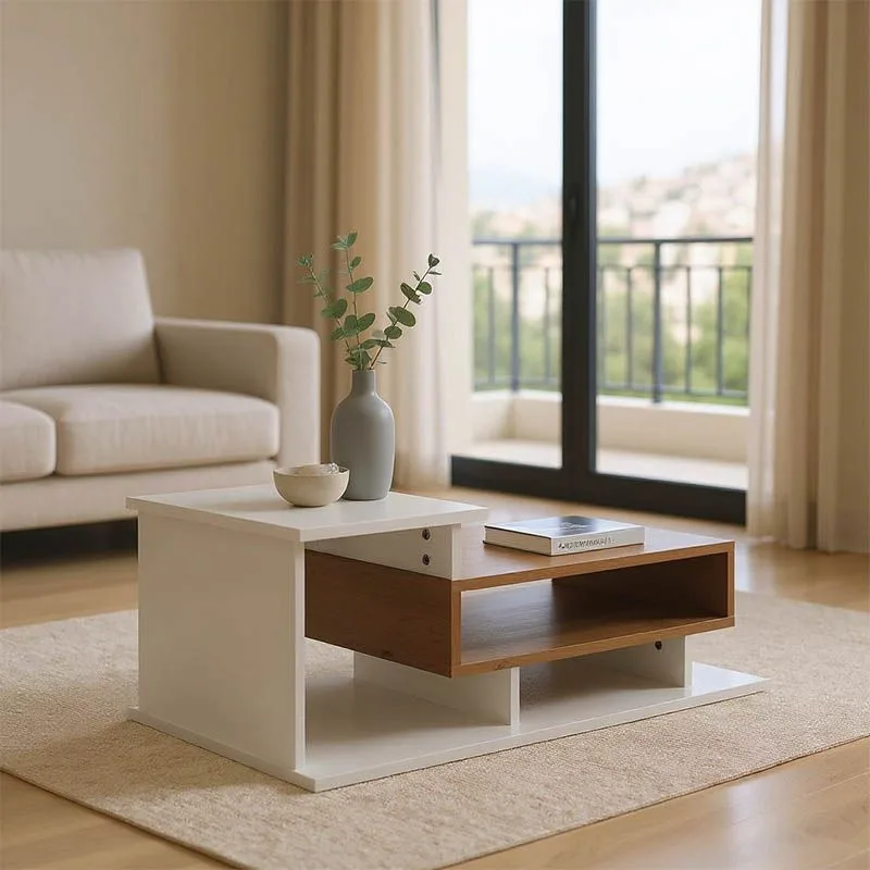 - Διαθέτει δύο επιφάνειες, προσφέροντας άφθονο χώρο για την τοποθέτηση αντικειμένων, όπως βιβλία, περιοδικά, διακοσμητικά