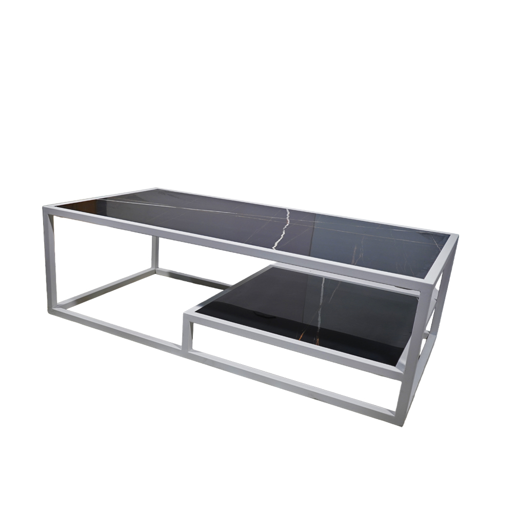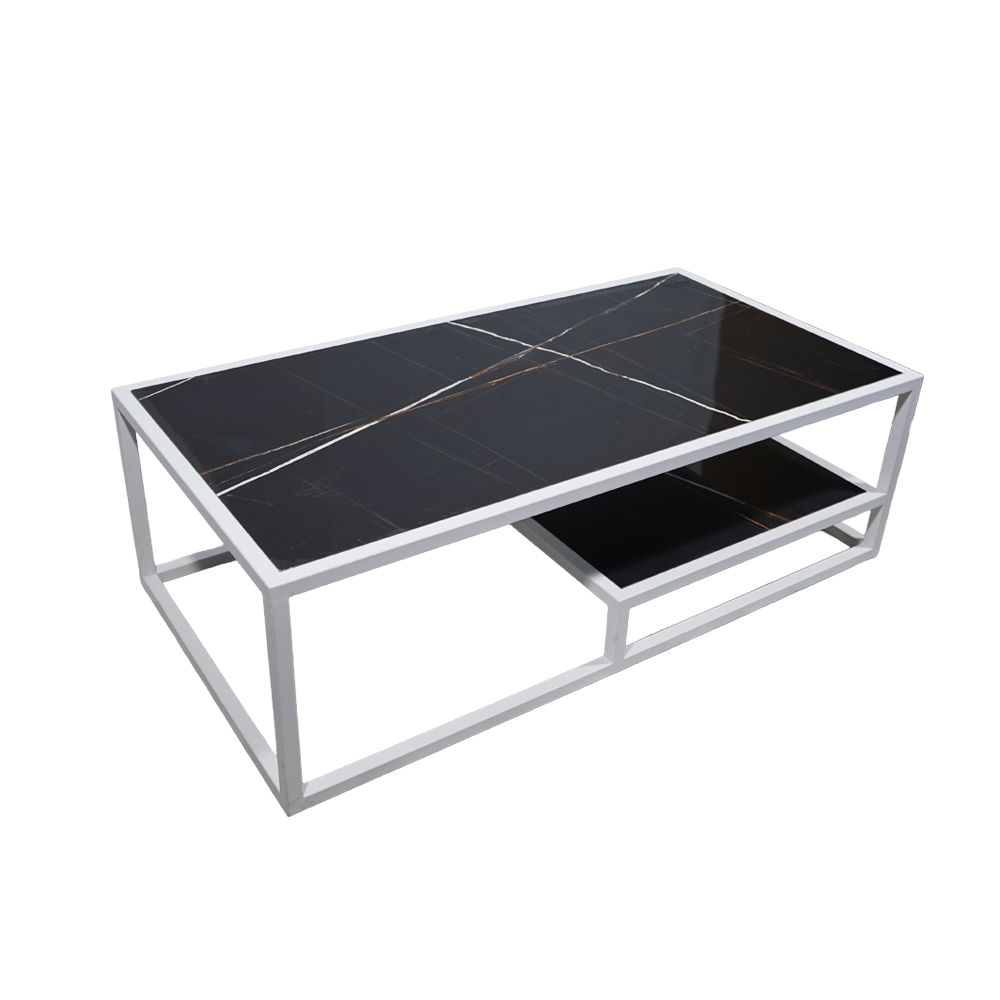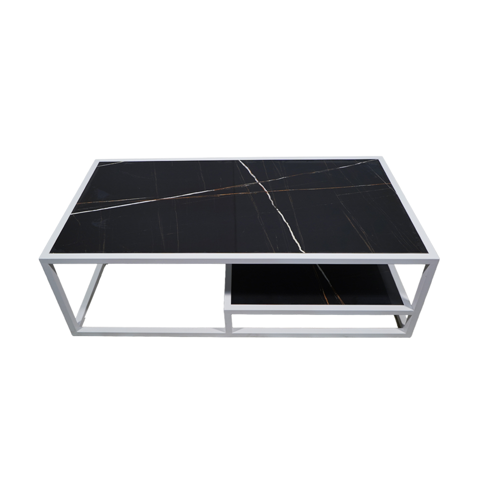 Η στιβαρή μεταλλική βάση σε λευκή ματ απόχρωση προσφέρει άριστη σταθερότητα και μοντέρνα γεωμετρική γραμμή, ενώ παράλληλα αναδεικνύει τον καλλιτεχνικό χαρακτήρα της επιφάνειας. Το τραπέζι αποτελεί ιδανική επιλογή για σαλόνια που επιθυμούν μια πινελιά πολυτέλειας και μοναδικότητας.