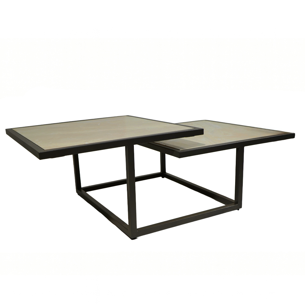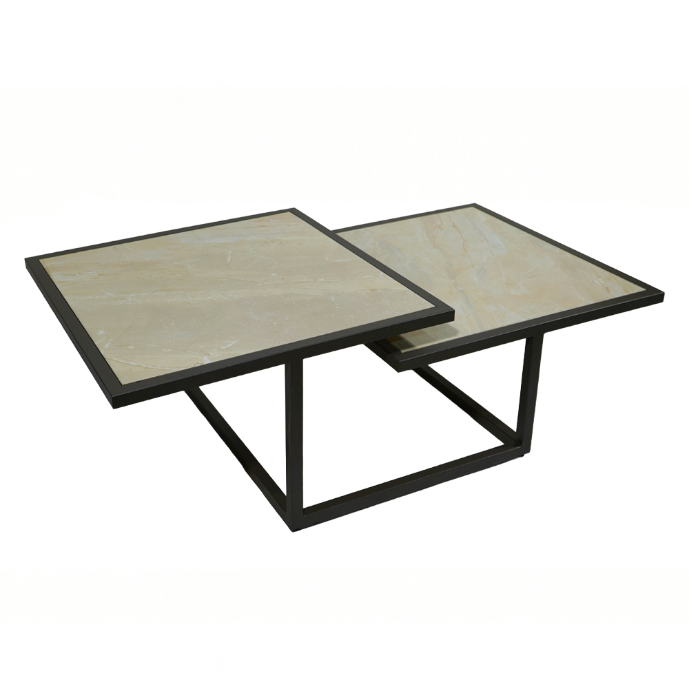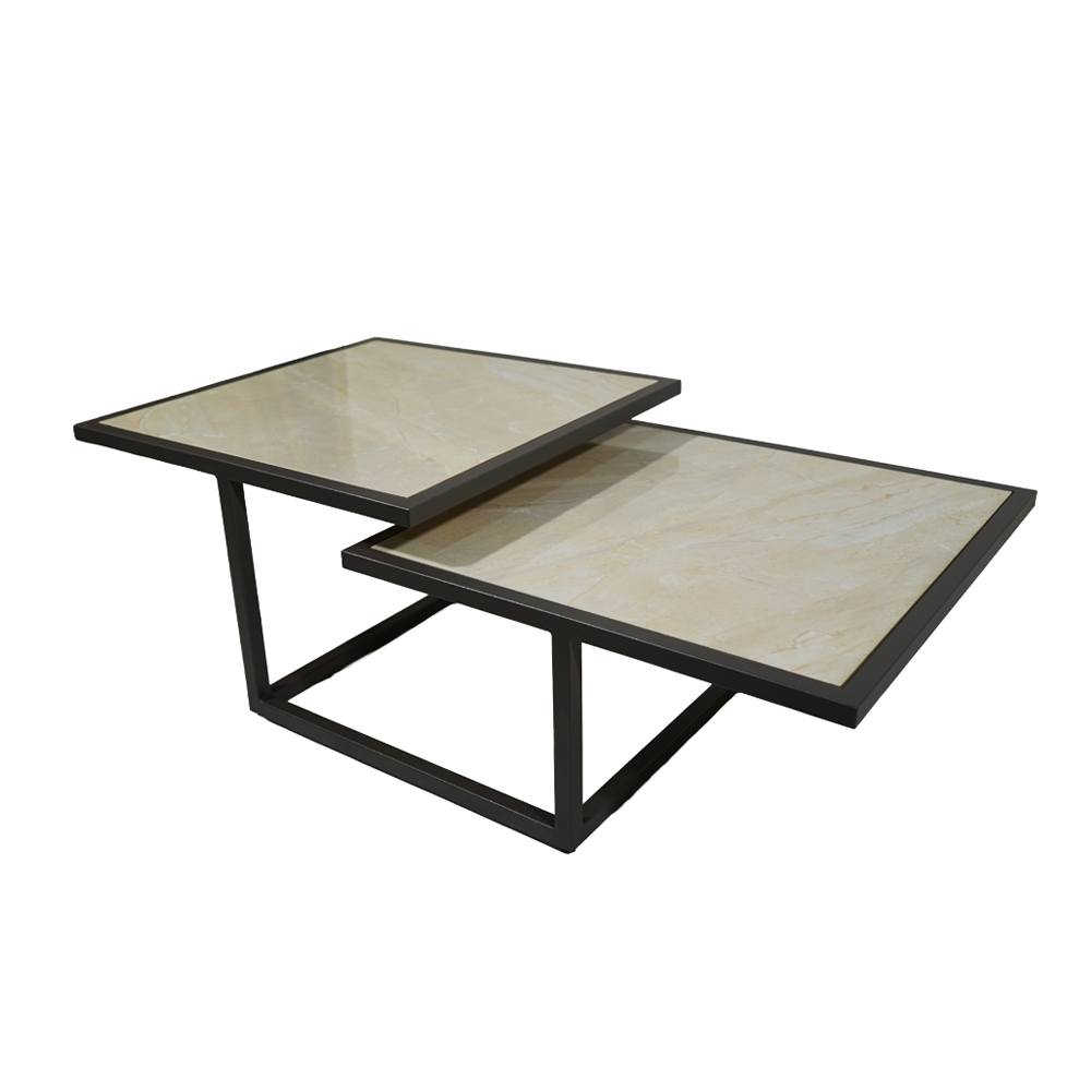Tραπέζια σαλονιού Crismory σετ 2τεμ MDF σε απόχρωση λευκό μαρμάρου και μαύρα μεταλλικά πόδια