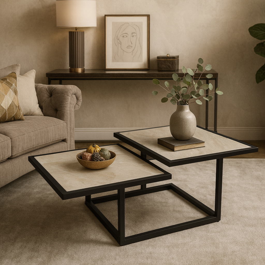 Ανανεώστε το σαλόνι σας με αυτό το κομψό και μοντέρνο τραπεζάκι σαλονιού. Ο μοναδικός σχεδιασμός του διπλού επιπέδου συνδυάζει την αισθητική με τη λειτουργικότητα, προσφέροντας άνεση και στυλ στον χώρο σας.