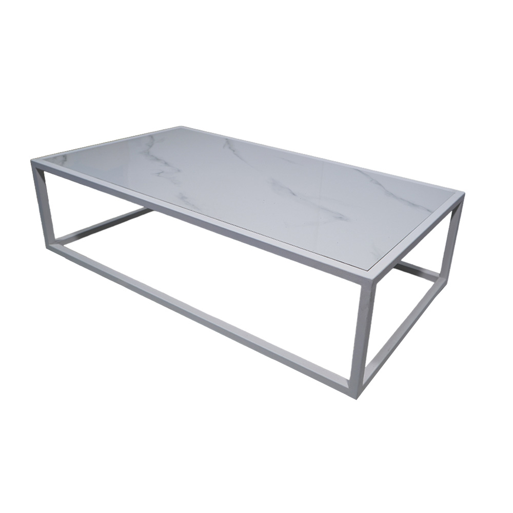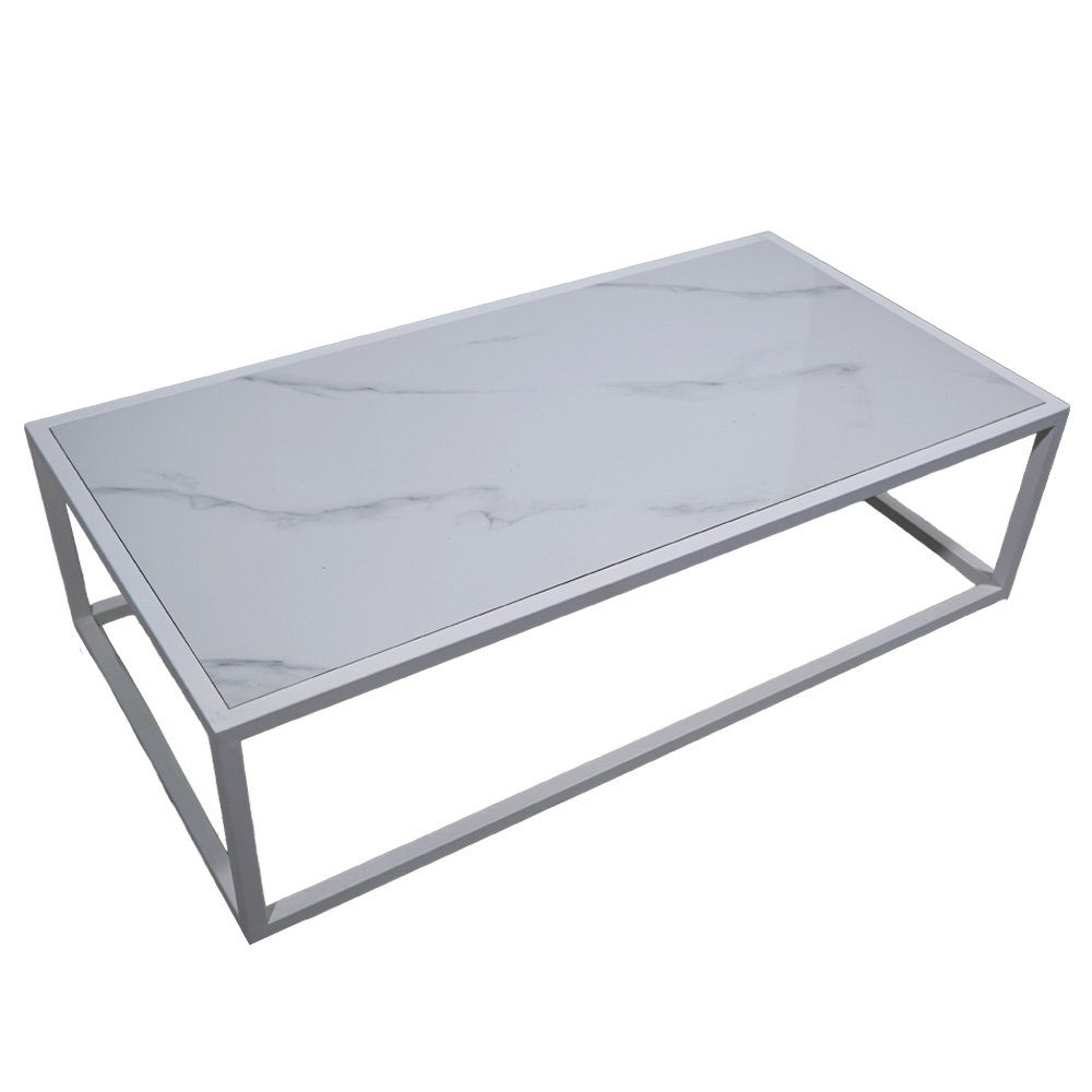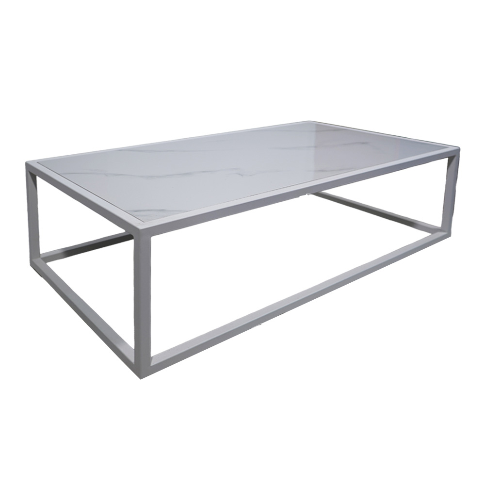 Αναβαθμίστε τον χώρο του σαλονιού σας με ένα κομψό και διαχρονικό κομμάτι σχεδιασμού. Το τραπεζάκι σαλονιού διαθέτει πολυτελή επιφάνεια από πλακάκι με όψη λευκό μάρμαρο με φυσικά λευκά νερά, προσφέροντας μοναδική αισθητική και εκλεπτυσμένη υφή. Η μοντέρνα, λευκή μεταλλική βάση με γραμμικό design εξασφαλίζει σταθερότητα, αντοχή και στυλ.