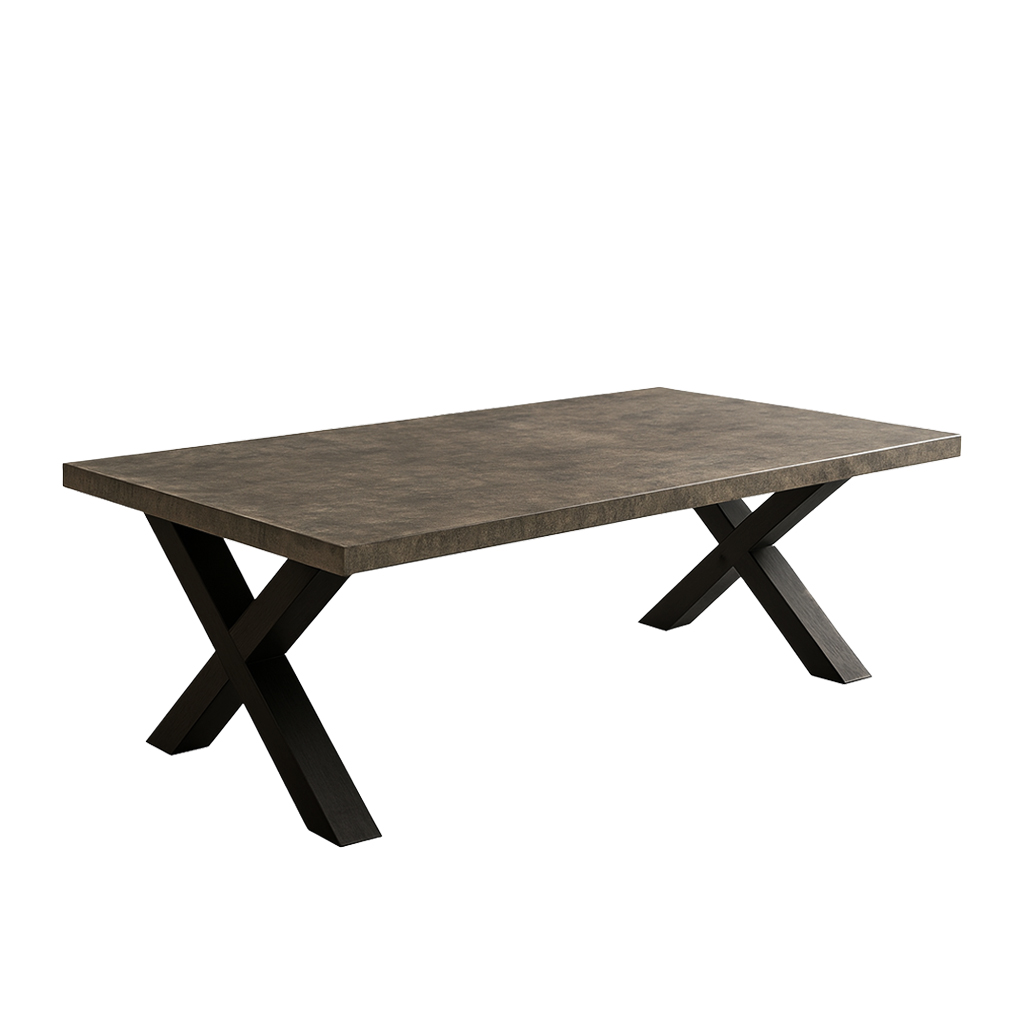 Αναβαθμίστε το σαλόνι σας με αυτό το εντυπωσιακό τραπέζι σαλονιού μοντέρνου σχεδιασμού, που συνδυάζει κομψότητα και ανθεκτικότητα. Η ορθογώνια επιφάνεια με όψη μάρμαρου σε γκρι χρώμα προσδίδει μια αίσθηση πολυτέλειας, ενώ τα μεταλλικά πόδια σε σχήμα Χ χαρίζουν βιομηχανικό χαρακτήρα και εξαιρετική σταθερότητα.