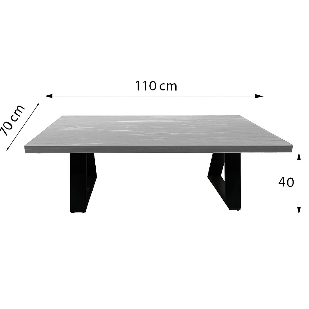Αναδείξτε την αισθητική του χώρου σας με αυτό το κομψό και σύγχρονο τραπεζάκι σαλονιού. Η επιφάνειά του είναι κατασκευασμένη από μελαμίνη υψηλής ποιότητας, προσφέροντας μεγαλύτερη αντοχή στην καθημερινή χρήση. Το τραπέζι στηρίζεται σε δύο μεταλλικές βάσεις βαμμένες σε μαύρο ματ χρώμα, που του χαρίζουν σταθερότητα και μοντέρνο χαρακτήρα.