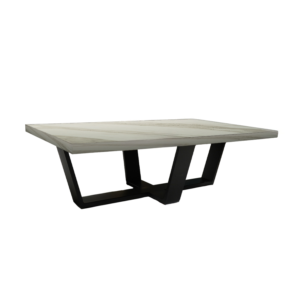ΤΡΑΠΕΖΙ ΣΑΛΟΝΙΟΥ RIVA ΜΕ ΜΕΤΑΛΛΙΚΟ ΣΚΕΛΕΤΟ & ΕΠΙΦΑΝΕΙΑ ΑΠΟ ΜΕΛΑΜΙΝΗ ΤΥΠΟΥ ΜΑΡΜΑΡΟ ΛΕΥΚΟ ΜΕ ΜΠΕΖ ΝΕΡΑ