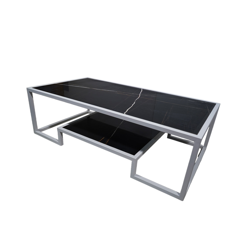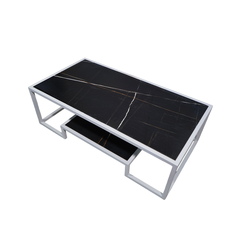 Η στιβαρή μεταλλική βάση σε λευκή ματ απόχρωση προσφέρει άριστη σταθερότητα και μοντέρνα γεωμετρική γραμμή, ενώ παράλληλα αναδεικνύει τον καλλιτεχνικό χαρακτήρα της επιφάνειας. Το τραπέζι αποτελεί ιδανική επιλογή για σαλόνια που επιθυμούν μια πινελιά πολυτέλειας και μοναδικότητας.