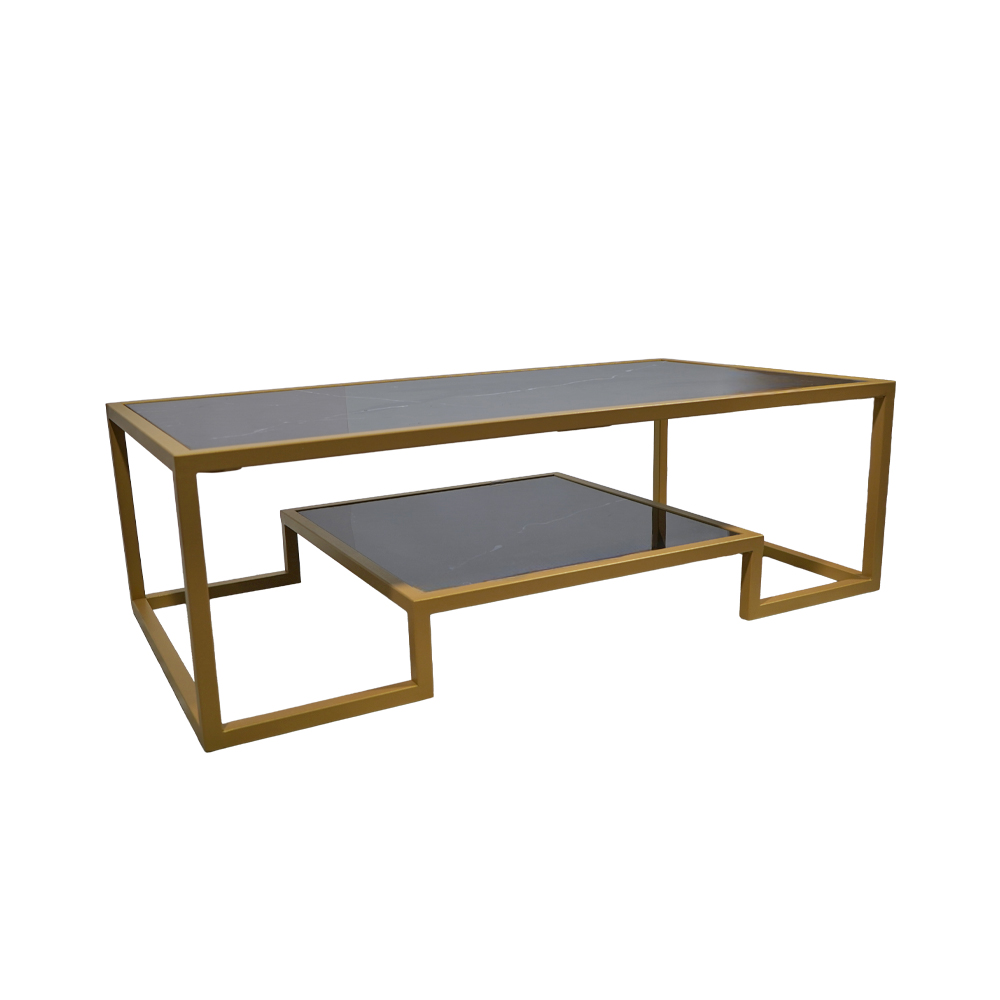 Η στιβαρή μεταλλική βάση σε χρυσή ματ απόχρωση προσφέρει άριστη σταθερότητα και μοντέρνα γεωμετρική γραμμή, ενώ παράλληλα αναδεικνύει τον καλλιτεχνικό χαρακτήρα της επιφάνειας. Το τραπέζι αποτελεί ιδανική επιλογή για σαλόνια που επιθυμούν μια πινελιά πολυτέλειας και μοναδικότητας.