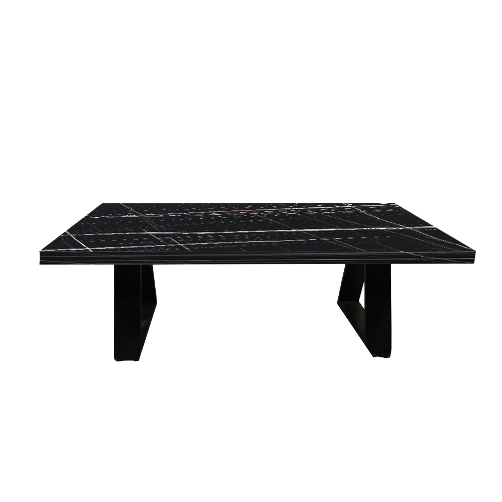 Αναδείξτε την αισθητική του χώρου σας με αυτό το κομψό και σύγχρονο τραπεζάκι σαλονιού. Η επιφάνειά του είναι κατασκευασμένη από μελαμίνη υψηλής ποιότητας, προσφέροντας μεγαλύτερη αντοχή στην καθημερινή χρήση. Το τραπέζι στηρίζεται σε δύο μεταλλικές βάσεις βαμμένες σε μαύρο ματ χρώμα, που του χαρίζουν σταθερότητα και μοντέρνο χαρακτήρα.