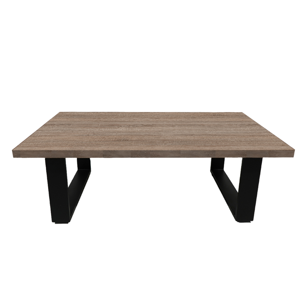Αναβαθμίστε το σαλόνι σας με αυτό το μοντέρνο τραπέζι σαλονιού, το οποίο συνδυάζει τη βιομηχανική αισθητική με τη διαχρονική λειτουργικότητα. Η επιφάνεια από μελαμίνη σε ανοιχτό ξύλο προσδίδει μια πιο ζεστή εμφάνιση, ενώ η μεταλλική μαύρη βάση σε σχήμα Π προσφέρει σταθερότητα και μοντέρνο χαρακτήρα.