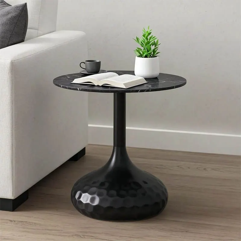Βοηθητικό τραπέζι Fabron μαύρο sintered stone Φ50×52εκ