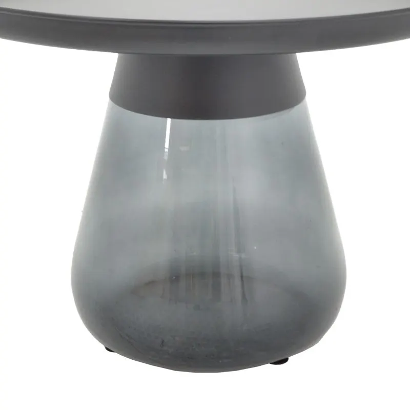 Βοηθητικό τραπέζι Kunlo μαύρο μέταλλο-μαύρο γυαλί Φ60×42εκ