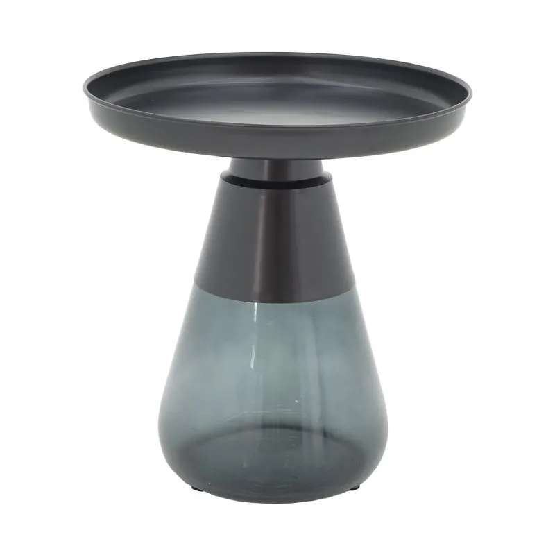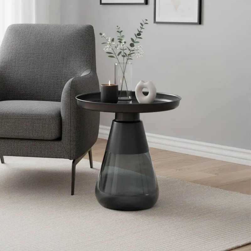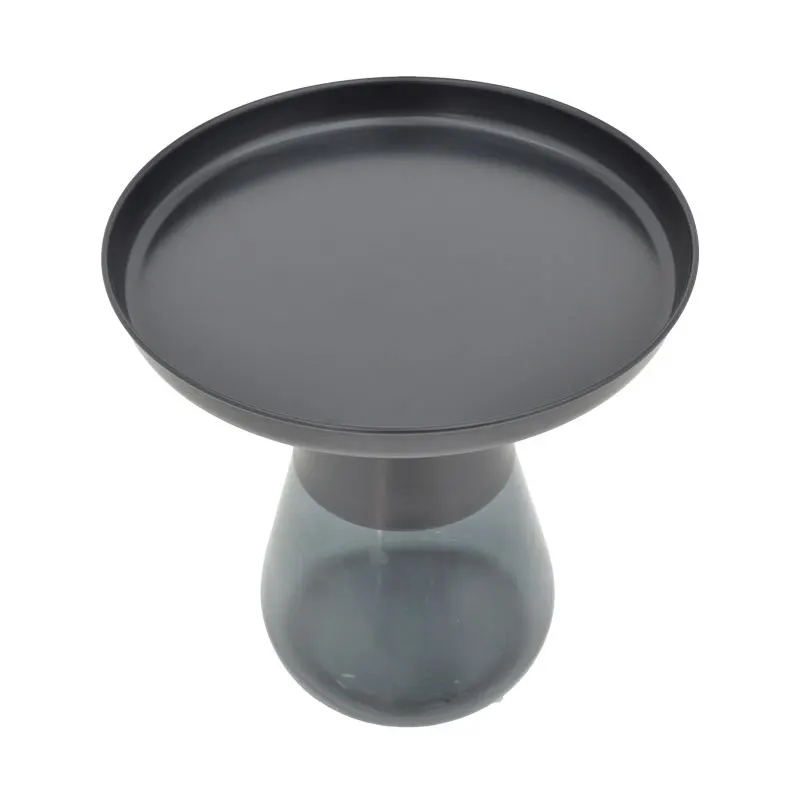 Βοηθητικό τραπέζι Kunlo μαύρο μέταλλο-μαύρο γυαλί Φ50×53.5εκ