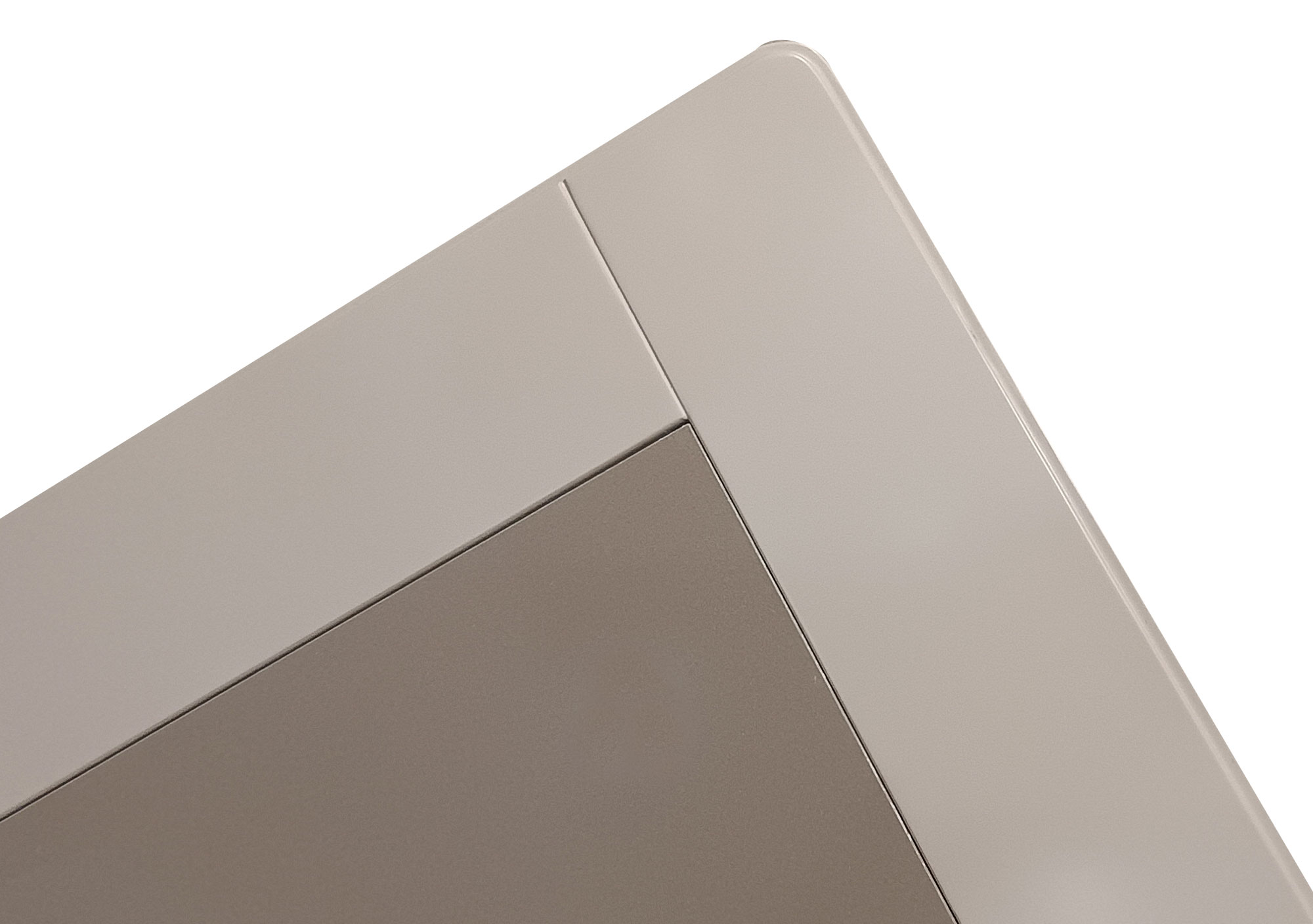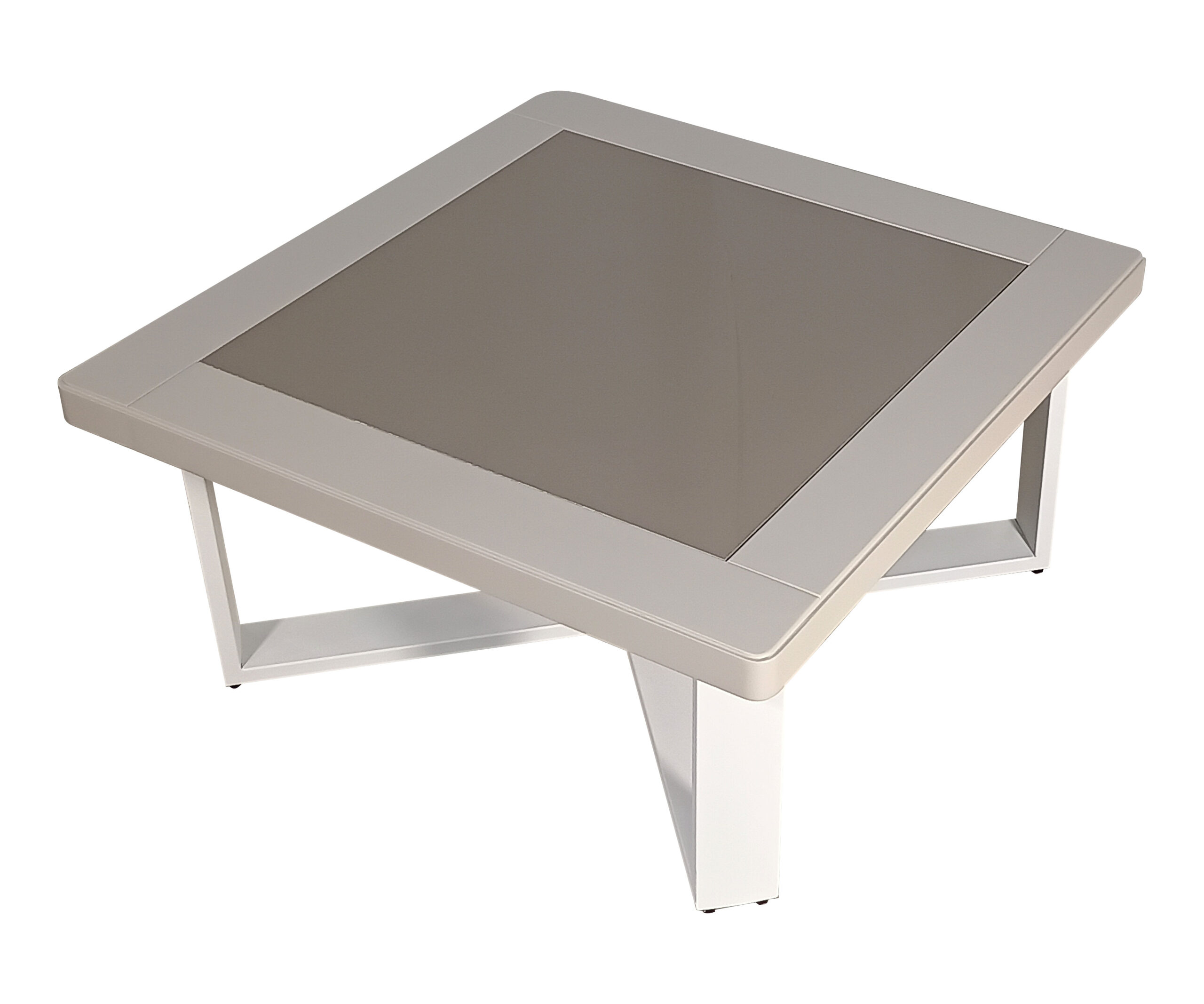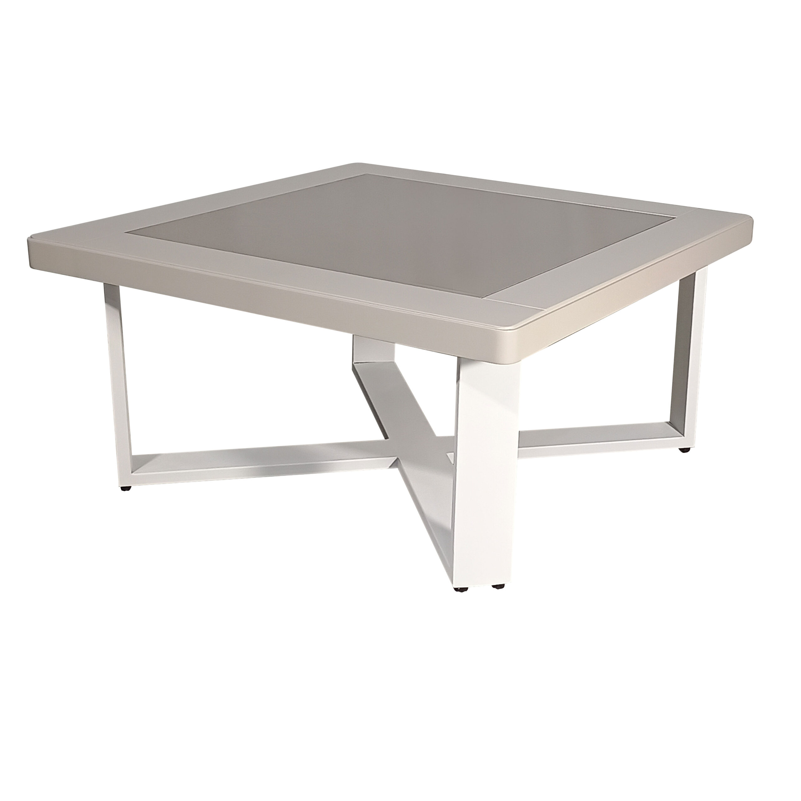 Ο μεταλλικός σκελετός με σταυρωτή βάση ενισχύει τη σταθερότητα και αποπνέει μια σύγχρονη, μίνιμαλ αισθητική. Η αντίθεση ανάμεσα στη ματ λευκή μεταλλική βάση και την κεραμική επιφάνεια δημιουργεί ένα αποτέλεσμα υψηλής αισθητικής, ιδανικό για μοντέρνους ή μινιμαλιστικούς χώρους.