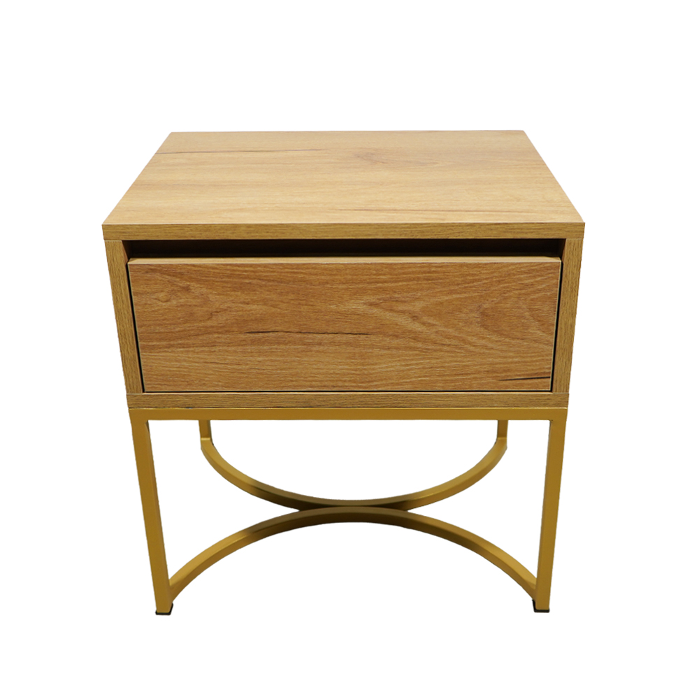 Μια εκλεπτυσμένη πρόταση για υπνοδωμάτια που συνδυάζει μοντέρνο design με διαχρονικά υλικά. Το σώμα του κομοδίνου διαθέτει επιφάνεια σε ανοιχτή απόχρωση. Η χρυσή μεταλλική βάση με καμπύλες λεπτομέρειες χαρίζει σταθερότητα και μια διακριτική λάμψη πολυτέλειας.
