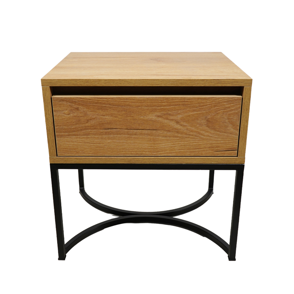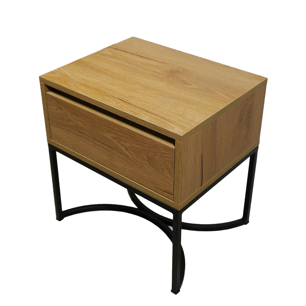 Μια εκλεπτυσμένη πρόταση για υπνοδωμάτια που συνδυάζει μοντέρνο design με διαχρονικά υλικά. Το σώμα του κομοδίνου διαθέτει επιφάνεια σε ανοιχτή απόχρωση. Η μαύρη μεταλλική βάση με καμπύλες λεπτομέρειες χαρίζει σταθερότητα και μια διακριτική λάμψη πολυτέλειας.