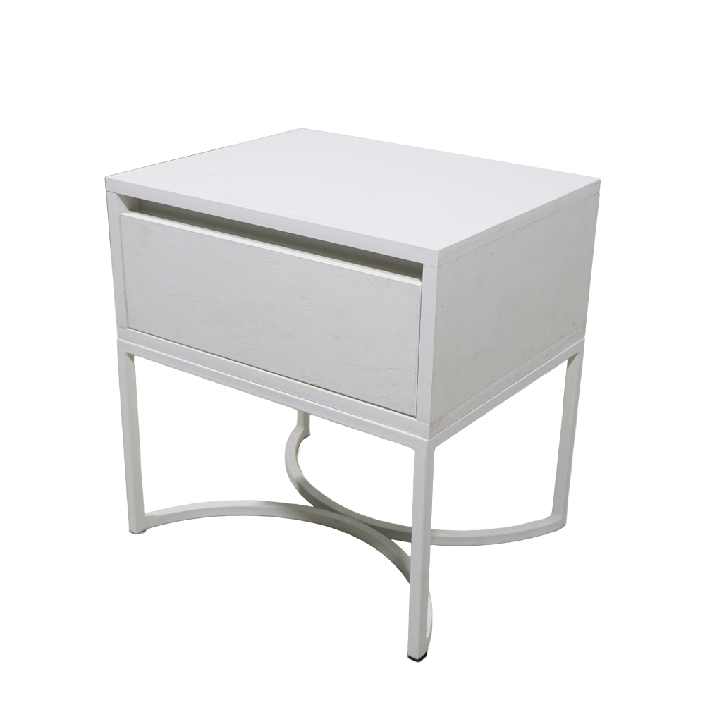 Μια εκλεπτυσμένη πρόταση για υπνοδωμάτια που συνδυάζει μοντέρνο design με διαχρονικά υλικά. Το σώμα του κομοδίνου διαθέτει επιφάνεια με όψη λευκου μαρμαρου. Η λευκή μεταλλική βάση με καμπύλες λεπτομέρειες χαρίζει σταθερότητα και μια διακριτική λάμψη πολυτέλειας.