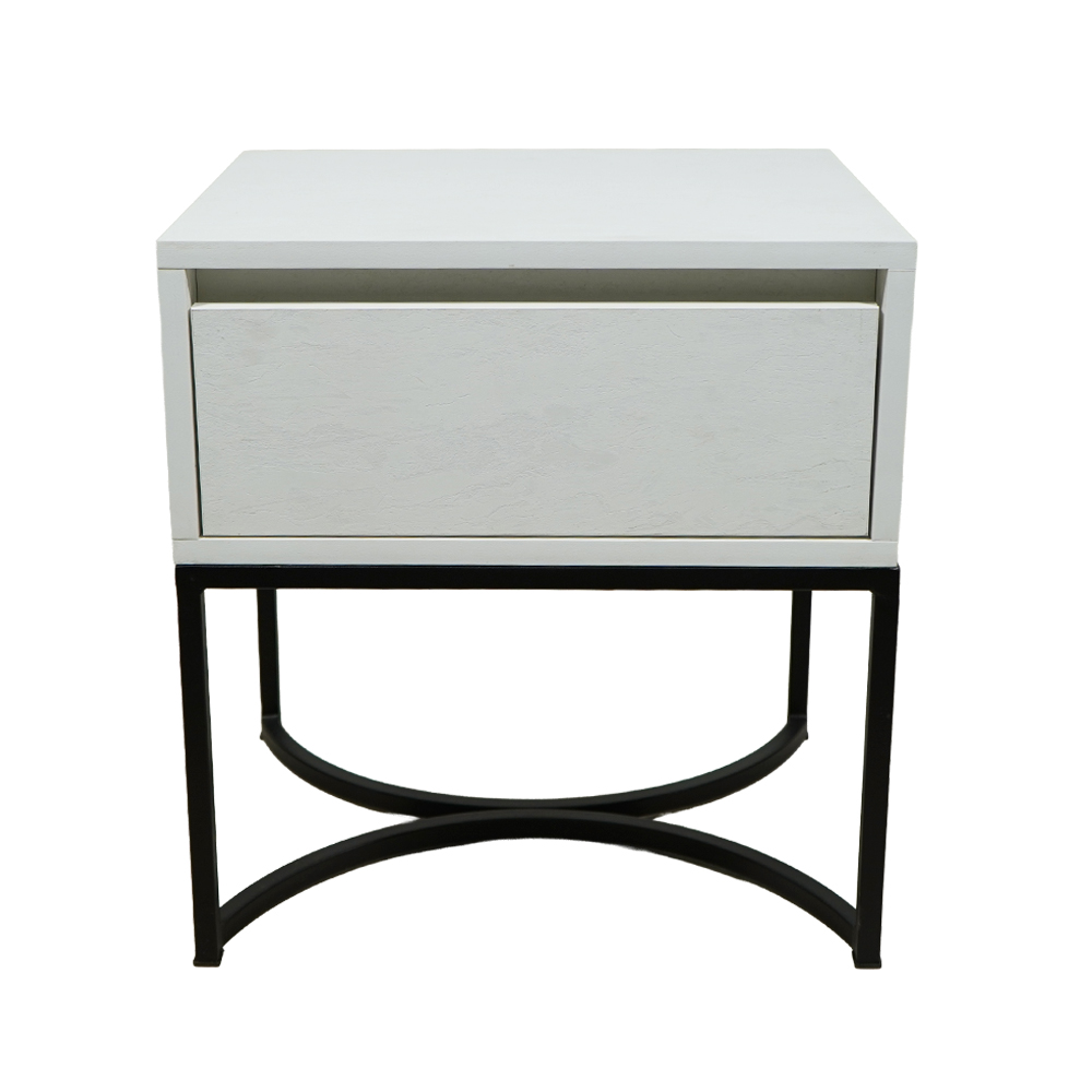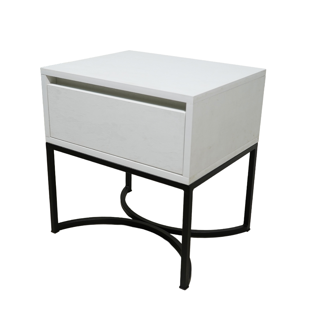 Μια εκλεπτυσμένη πρόταση για υπνοδωμάτια που συνδυάζει μοντέρνο design με διαχρονικά υλικά. Το σώμα του κομοδίνου διαθέτει επιφάνεια με όψη λευκου μαρμαρου. Η μαύρη μεταλλική βάση με καμπύλες λεπτομέρειες χαρίζει σταθερότητα και μια διακριτική λάμψη πολυτέλειας.