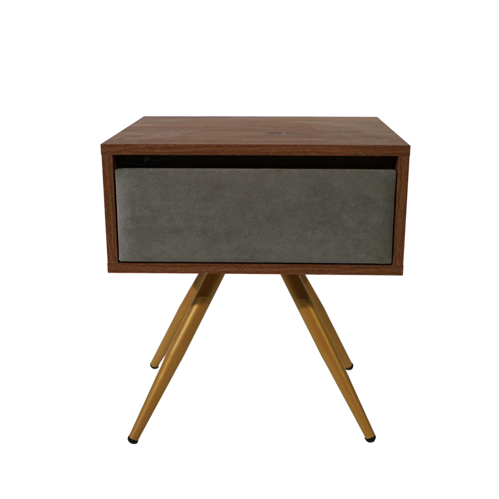 Κομοδίνο Komo-Arco συλλογής Spitimade by Moderno-Με Ξύλινη Όψη, Γκρί Υφασμάτινο Συρτάρι & Χρυσή Μεταλλική Βάση