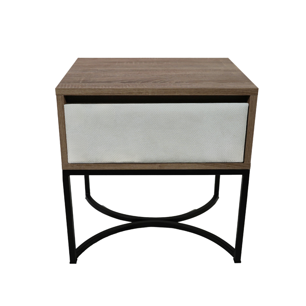 Κομοδίνο Komo-Arco συλλογής Spitimade by Moderno-Με Ξύλινη Όψη, Dusty Grey Υφασμάτινο Συρτάρι & Μαύρη Μεταλλική Βάση