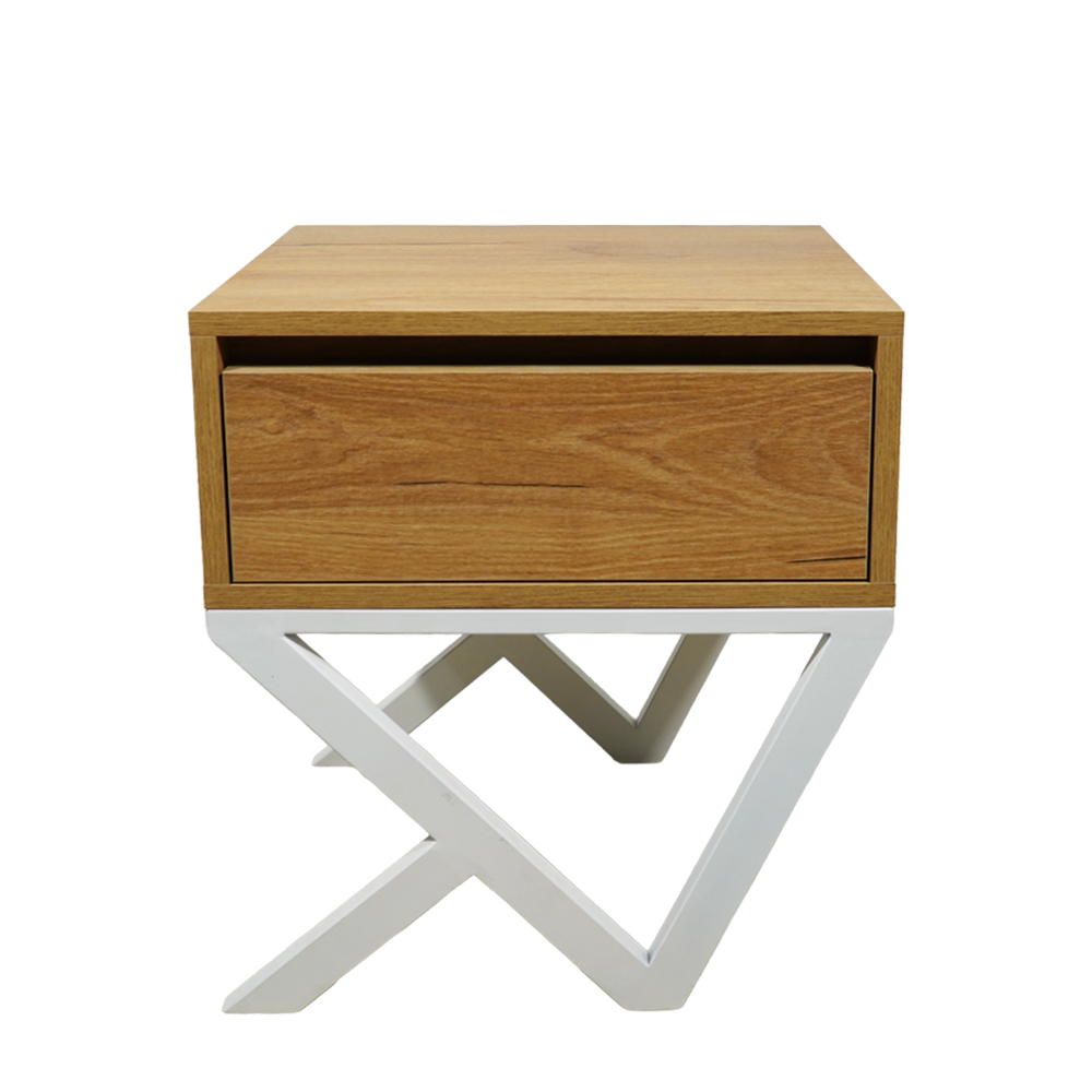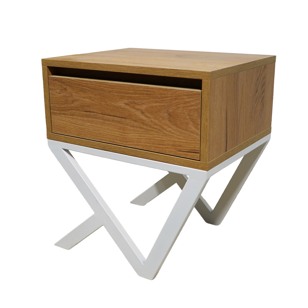Το μοντέρνο αυτό κομοδίνο συνδυάζει μίνιμαλ αισθητική με πρωτότυπο σχεδιασμό, προσφέροντας στυλ και λειτουργικότητα σε κάθε χώρο. Το σώμα του, σε ανοιχτή απόχρωση ξύλου, αποπνέει κομψότητα και καθαρότητα, ενώ η ιδιαίτερη βάση του αποτελεί το στοιχείο που το ξεχωρίζει. Η μεταλλική βάση με γεωμετρικό, διασταυρούμενο σχεδιασμό προσδίδει μοντέρνο χαρακτήρα και υψηλή σταθερότητα. Οι καθαρές γραμμές και οι ασύμμετρες γωνίες δημιουργούν ένα αρχιτεκτονικό αποτέλεσμα που τραβά το βλέμμα, καθιστώντας το κομοδίνο ιδανικό για σύγχρονους και εκλεπτυσμένους εσωτερικούς χώρους.