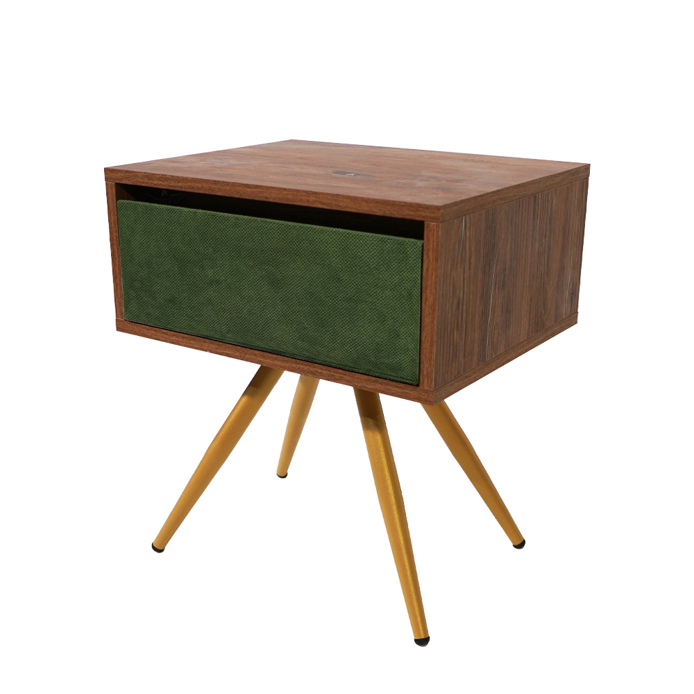 Κομοδίνο Komo-Νord συλλογής Spitimade by Moderno-Με Υφασμάτινο Πράσινο Συρτάρι & Χρυσά Μεταλλικά Πόδια