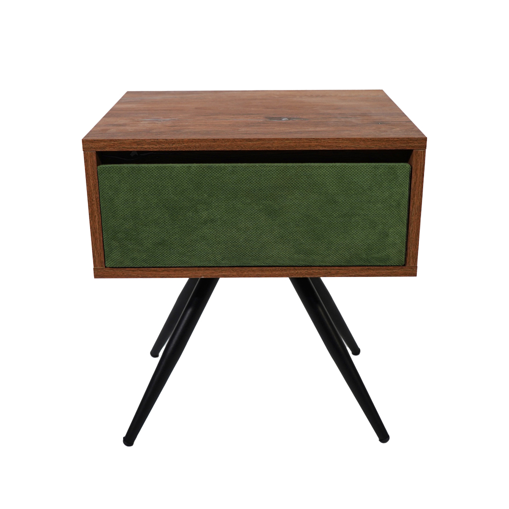 Κομοδίνο Komo-Νord συλλογής Spitimade by Moderno-Με Υφασμάτινο Πράσινο Συρτάρι & Μαύρα Μεταλλικά Πόδια