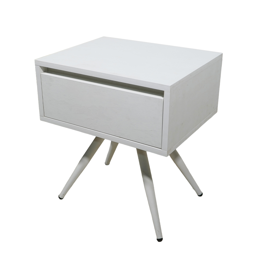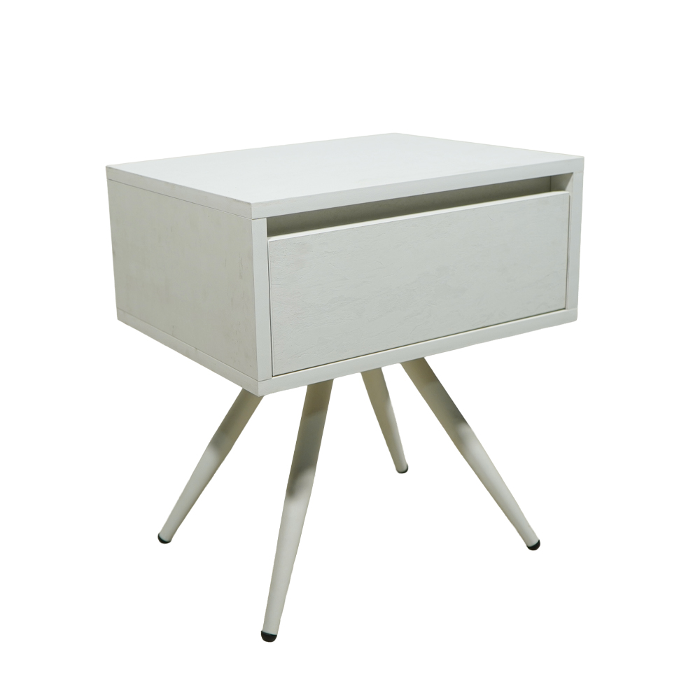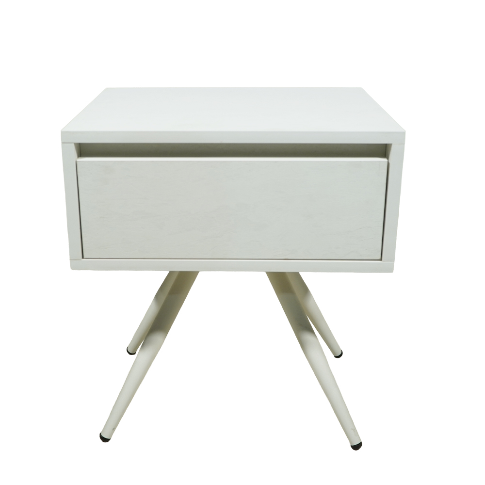 Το κομοδίνο Komo-Nord συνδυάζει την αυθεντικότητα  με μοντέρνες πινελιές, ιδανικό για χώρους που αποζητούν διαχρονική κομψότητα. Κατασκευασμένο από μελαμίνη με ρεαλιστική όψη λευκού μάρμαρου και χαρακτηριστικά “νερά”, διαθέτει έναν ενιαίο αποθηκευτικό χώρο με διακριτικό συρτάρι. Η βάση αποτελείται από τέσσερα λοξά μεταλλικά πόδια σε λευκή απόχρωση, που προσδίδουν σταθερότητα και εκλεπτυσμένο στυλ.