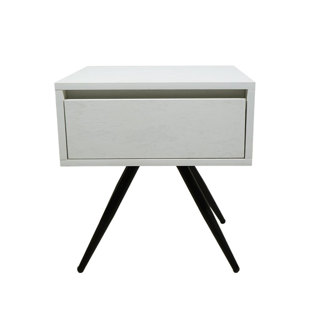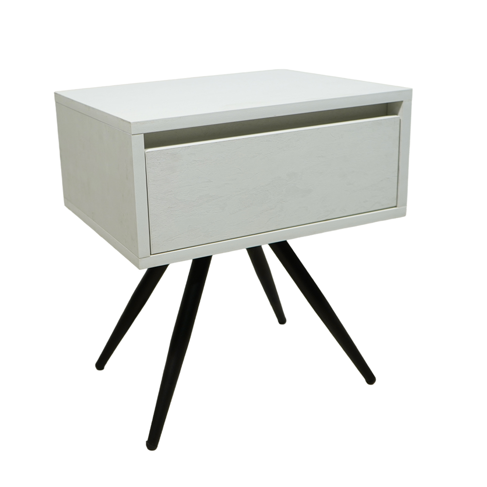 Το κομοδίνο Komo-Nord συνδυάζει την αυθεντικότητα με μοντέρνες πινελιές, ιδανικό για χώρους που αποζητούν διαχρονική κομψότητα. Κατασκευασμένο από μελαμίνη με ρεαλιστική όψη λευκού μάρμαρου και χαρακτηριστικά “νερά”, διαθέτει έναν ενιαίο αποθηκευτικό χώρο με διακριτικό συρτάρι. Η βάση αποτελείται από τέσσερα λοξά μεταλλικά πόδια σε μαύρη απόχρωση, που προσδίδουν σταθερότητα και εκλεπτυσμένο στυλ.