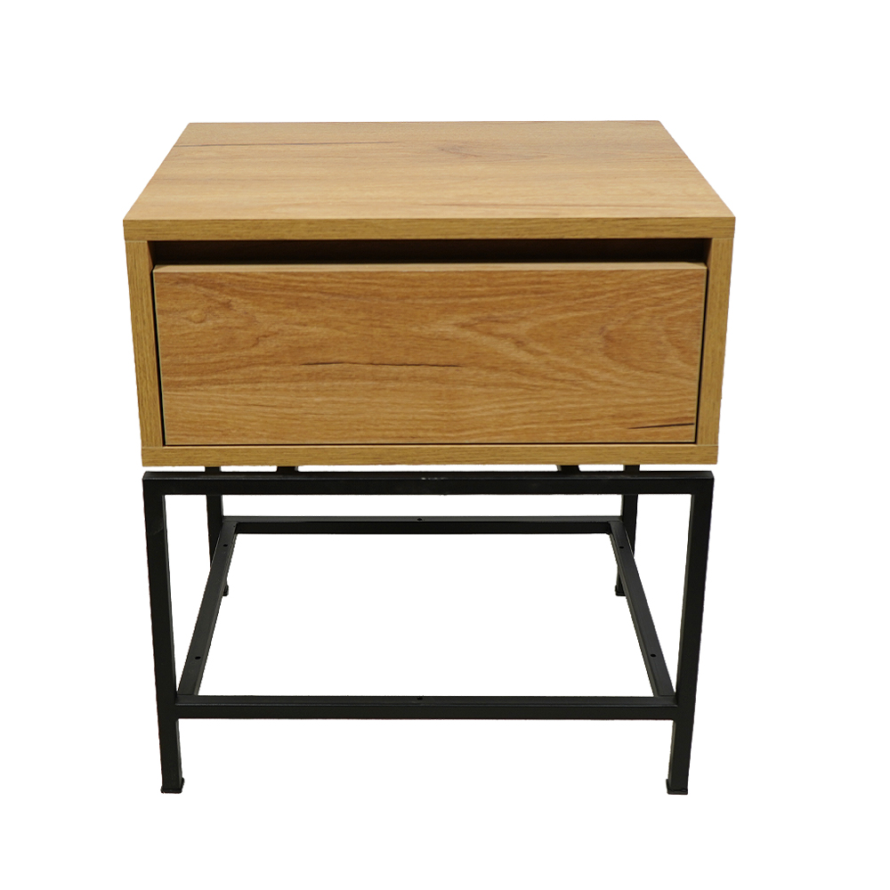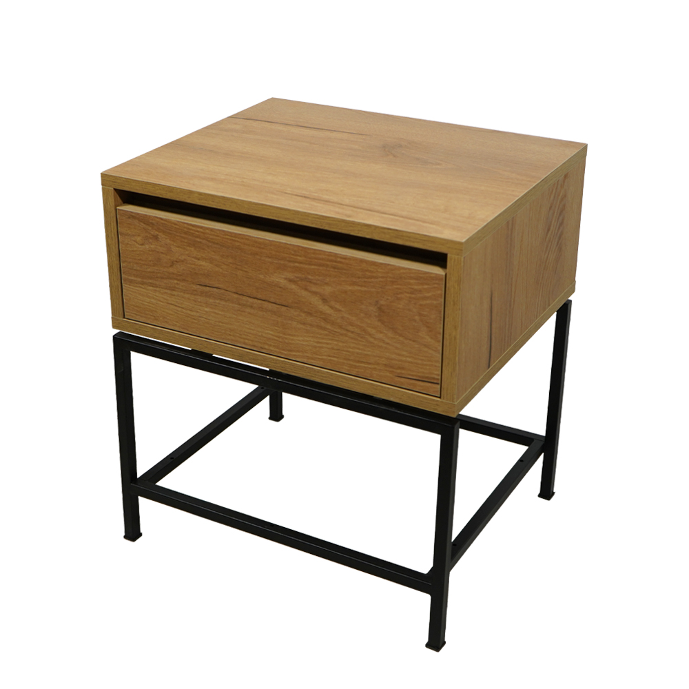 Αναδείξτε το υπνοδωμάτιό σας με το κομοδίνο Komo-Woodtex, ένα κομμάτι που συνδυάζει την πρακτικότητα με τον εκλεπτυσμένο χαρακτήρα της μαύρης μεταλλικής βάσης. Το συρτάρι και η επιφάνεια σε ανοιχτή απόχρωση ξύλου προσδίδουν μια αίσθηση πολυτέλειας, ενώ η μεταλλική βάση σε μαύρο ολοκληρώνει το σύνολο με μία μοντέρνα πινελιά.
